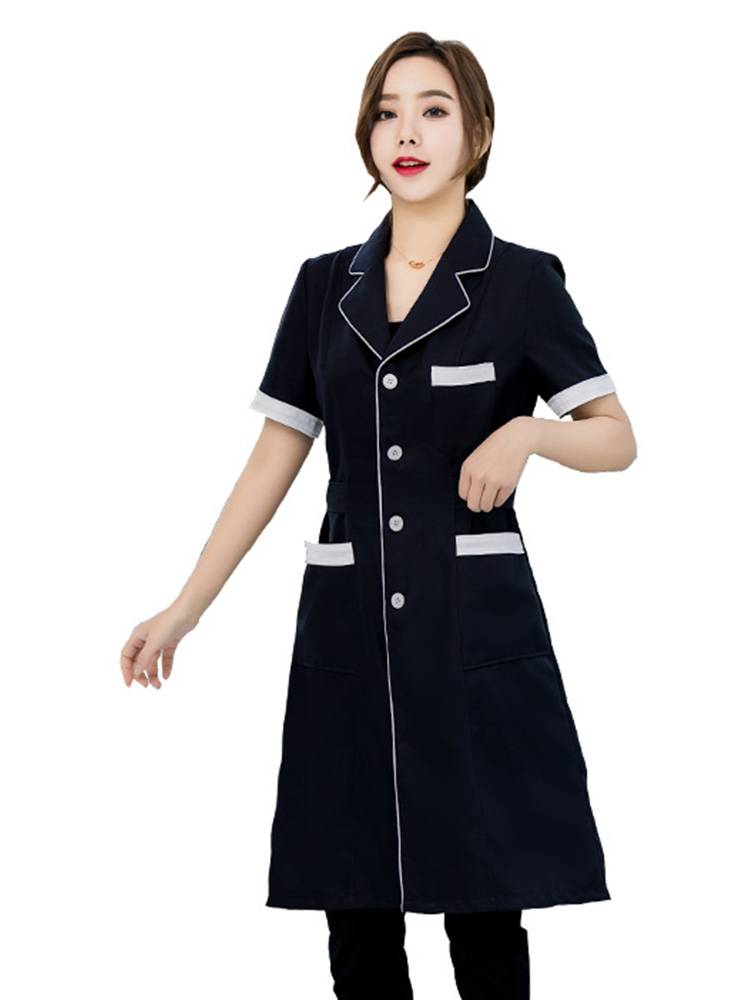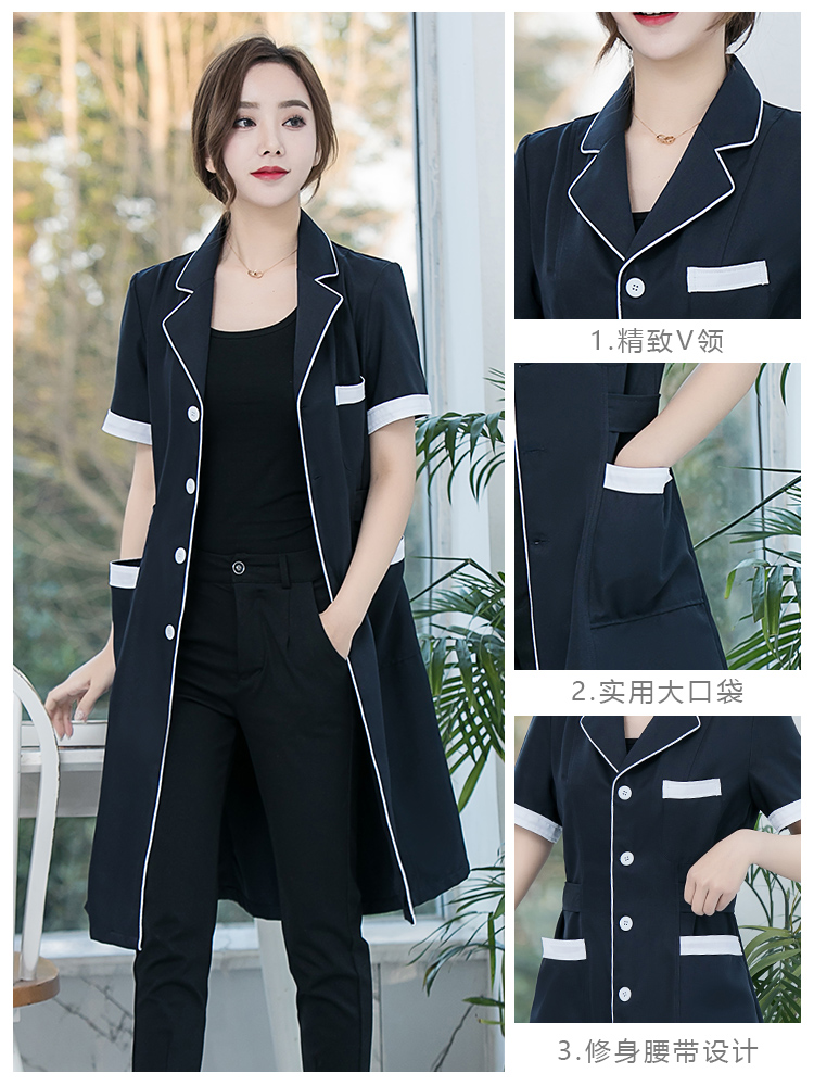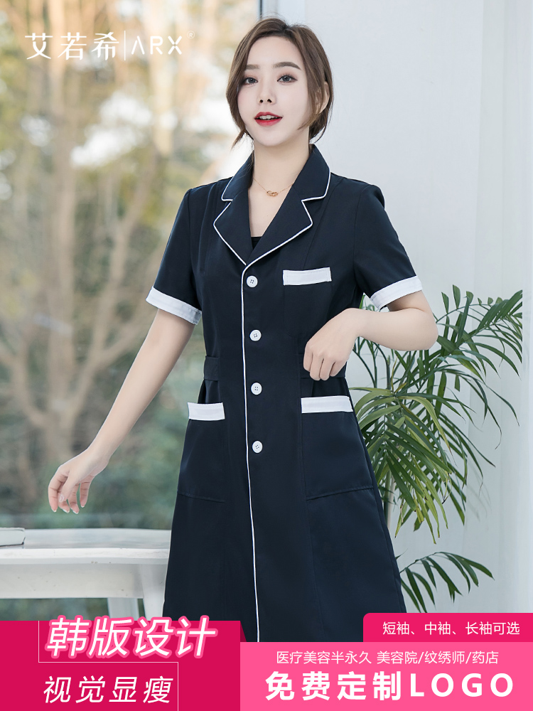 Beautician beauty salon work clothes female white coat short-sleeved female nurse clothes long-sleeved navy blue tattoo skin management
