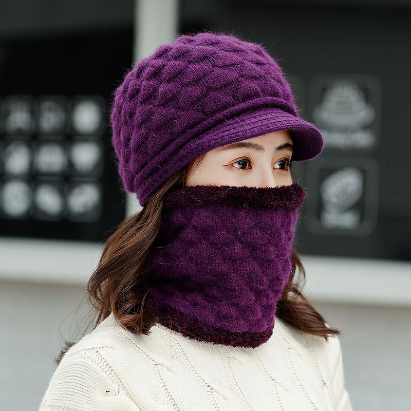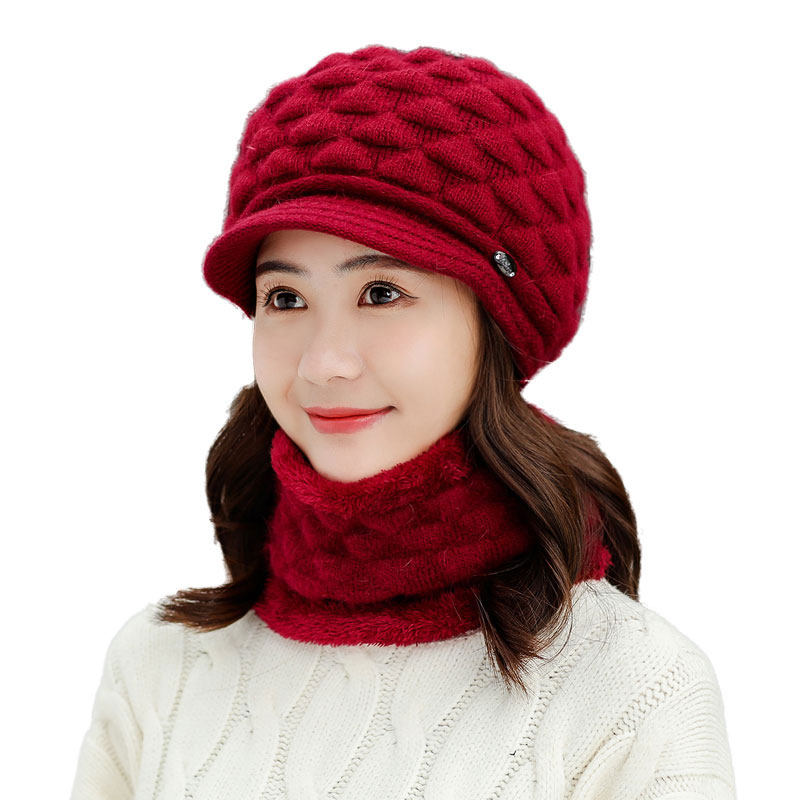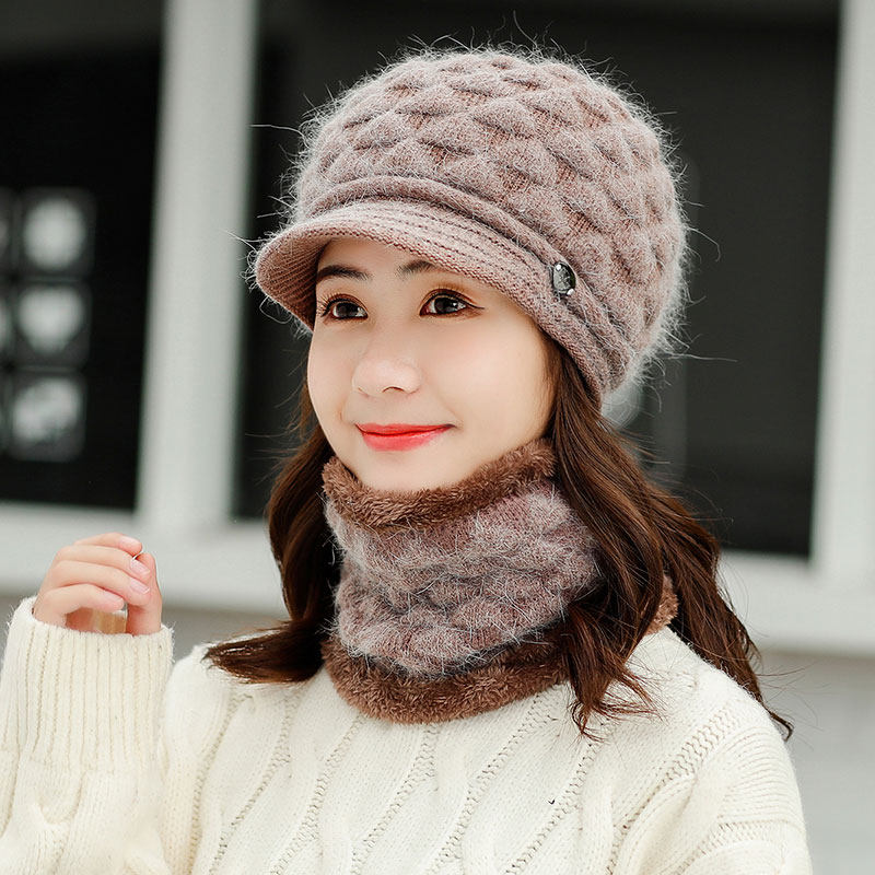 Winter hat female rabbit wool wool hat cold-proof knitted hat middle-aged and elderly warm ear protection plus velvet thick mother cotton hat