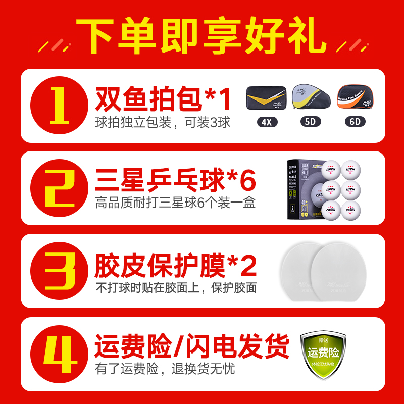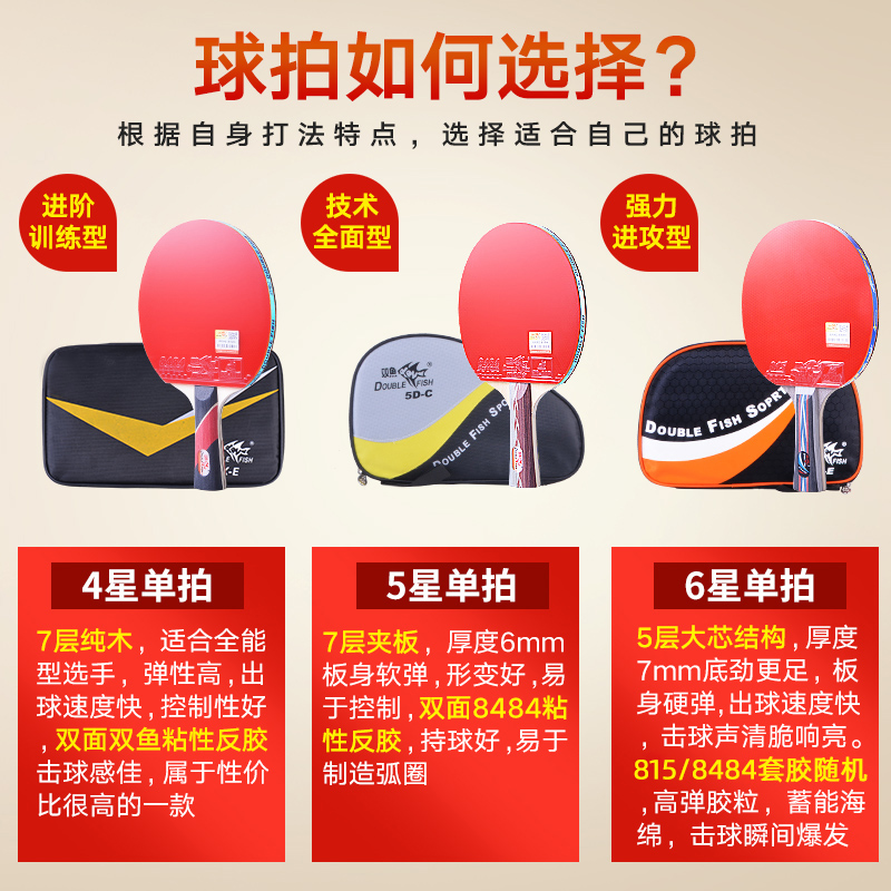 Pisces table tennis racket 4 stars single racket 1 straight racket beginner ping-pong racket five stars six stars professional level
