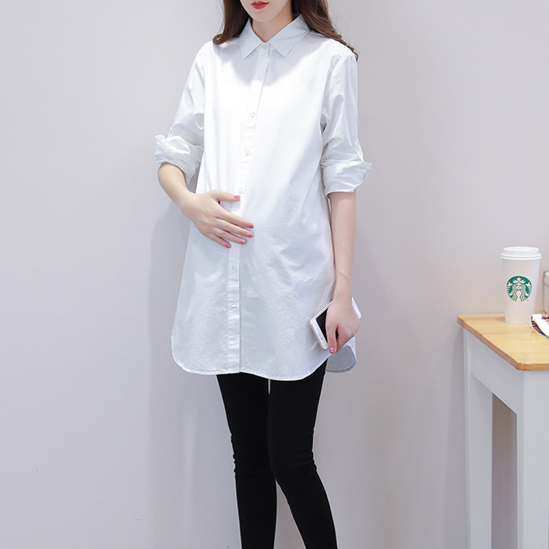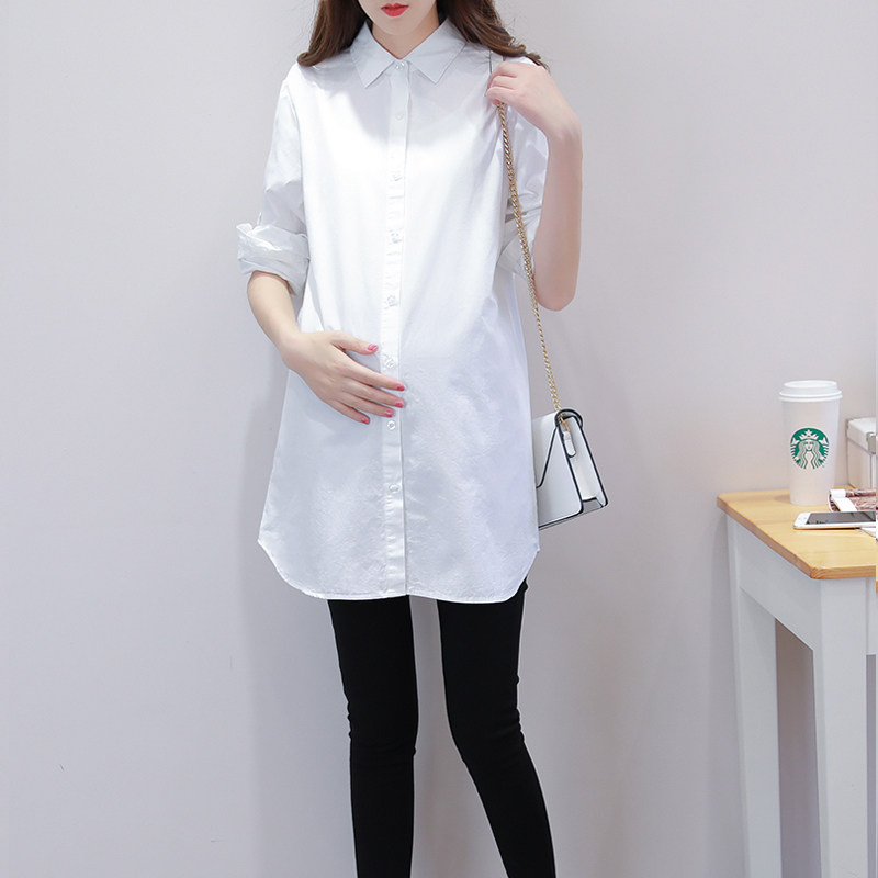 2022 autumn solid color maternity wear white shirt mid-length version over the hip large size top professional spring and autumn bottoming shirt