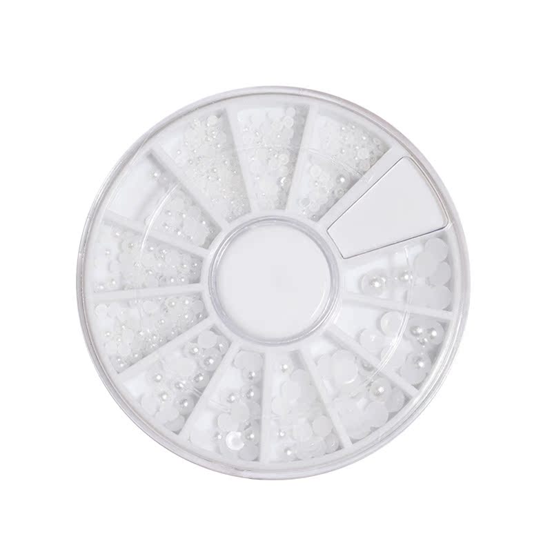 Yifei Nail Art Pearl Jewelry Flat Bottom Japanese Stereo Semicircle Pearl Mixed Turntable Box Nail Jewelry Stickers