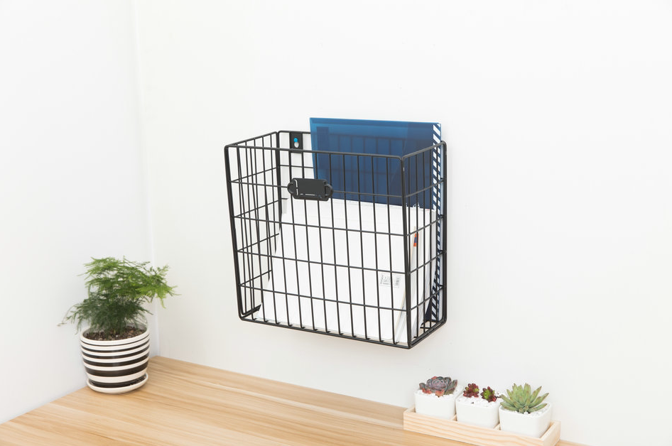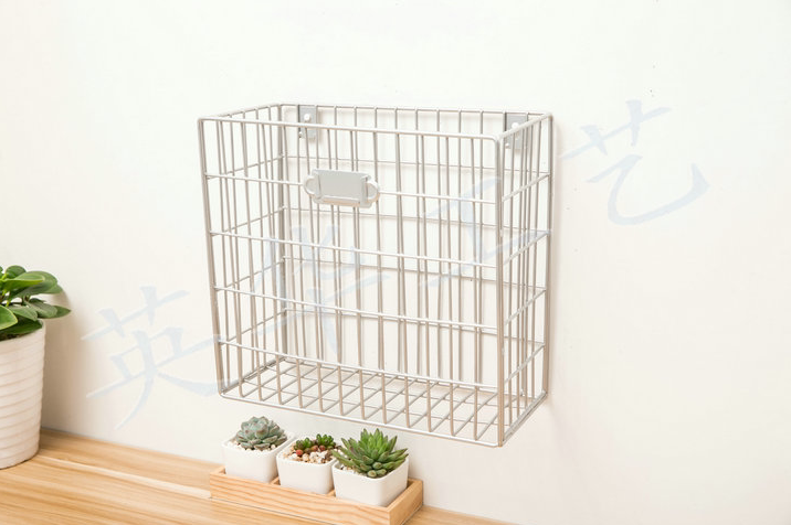 Wrought iron one grid wall hanging basket Wall hanging wall storage basket Metal grid household sundries Office stationery finishing