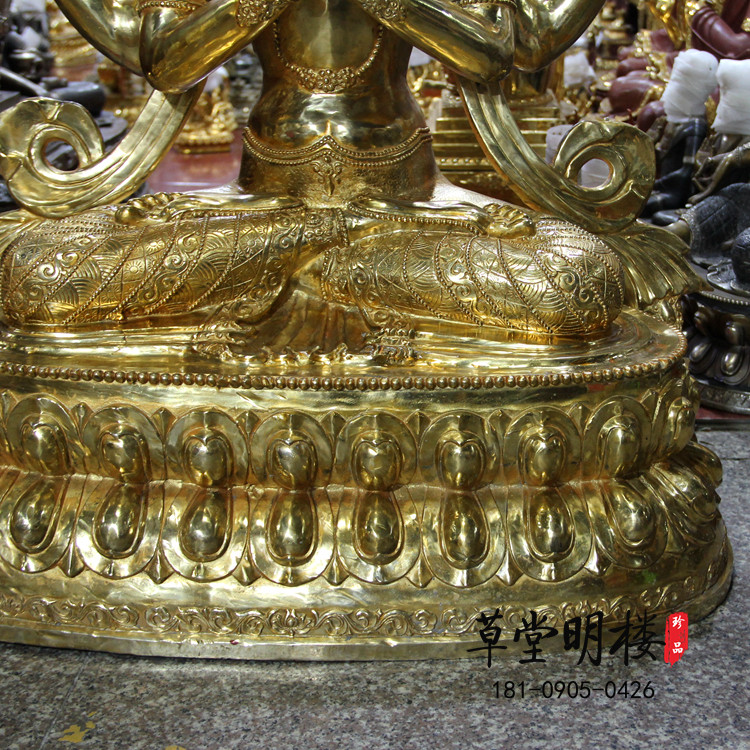 One meter high four arms Guanyin Tibetan Buddhism Pure Brass gold Buddha 4-arms Guanyin Buddha Hall Buddha Hall Pendulum can be contained