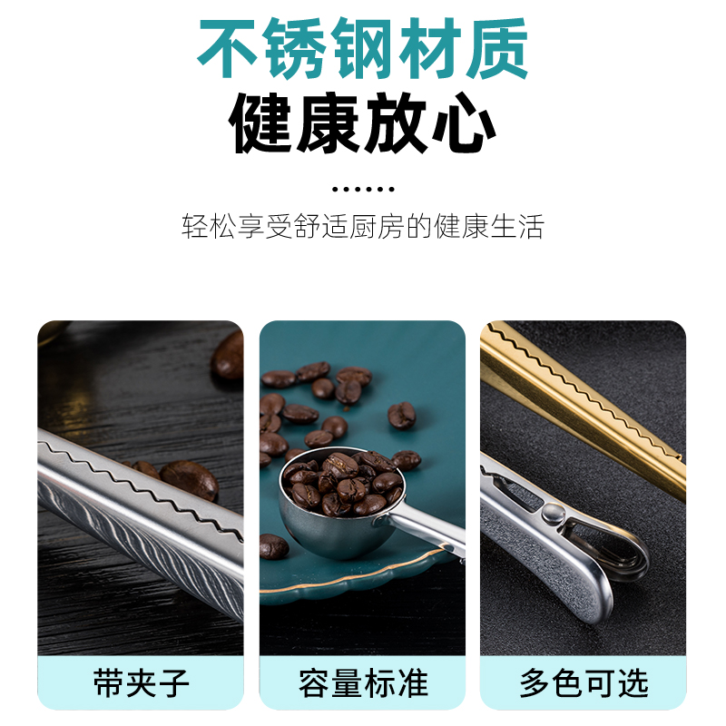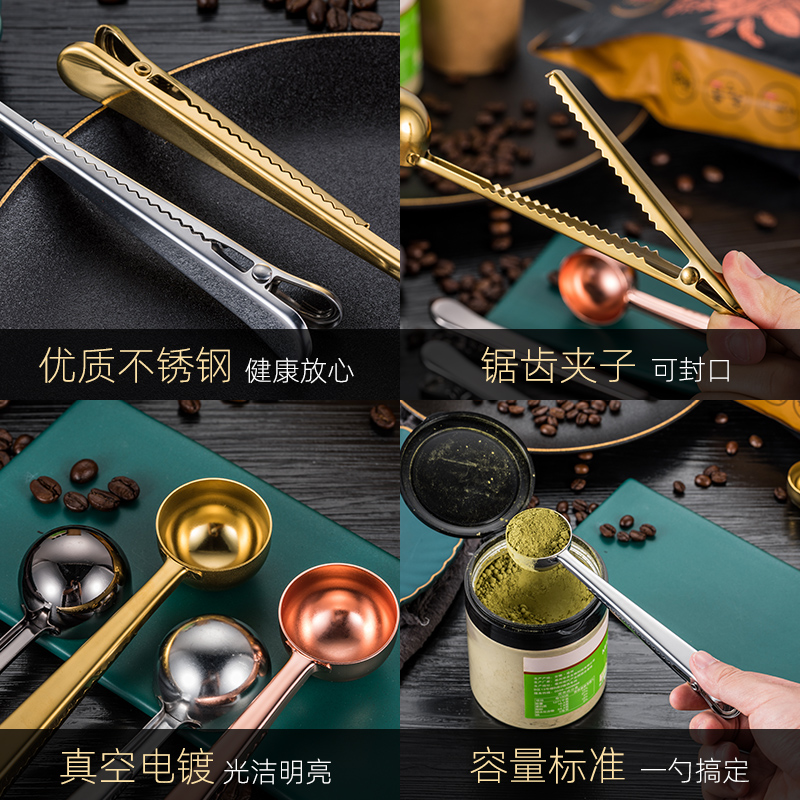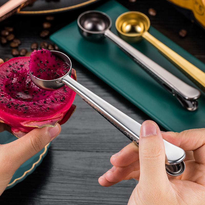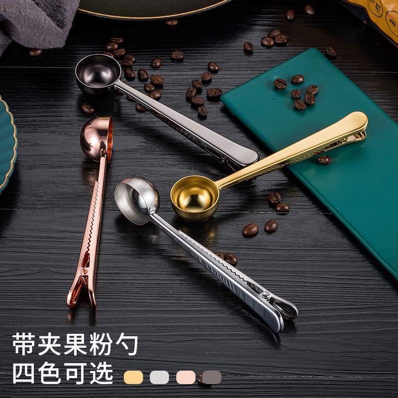 Stainless Steel With Seal Clip Fruit Powder Spoon Coffee Quantity Spoon Milk Powder Spoon Baking Dosing Spoon Creative Minima Seal Clip