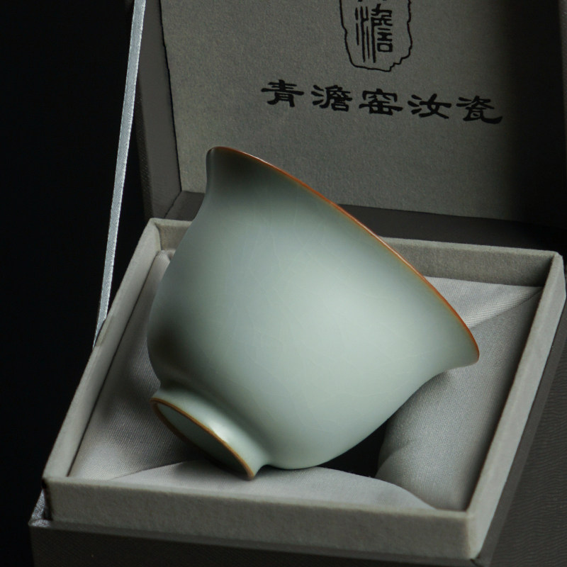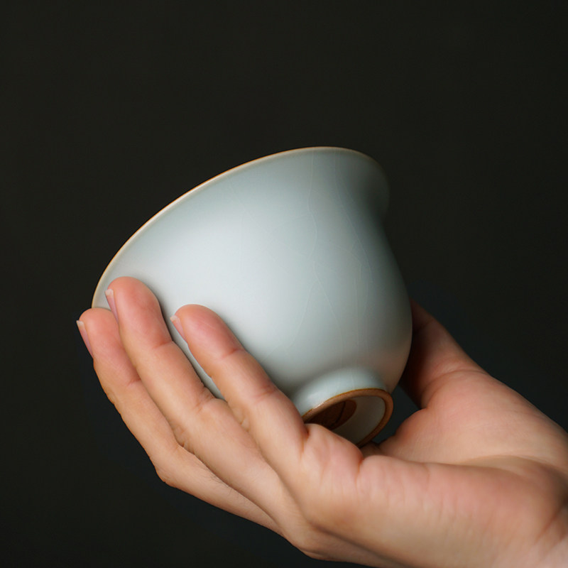 Ru kiln master cup single cup handmade tea bowl large Jingdezhen tea cup ceramic tea cup can be opened with ice cracked glaze
