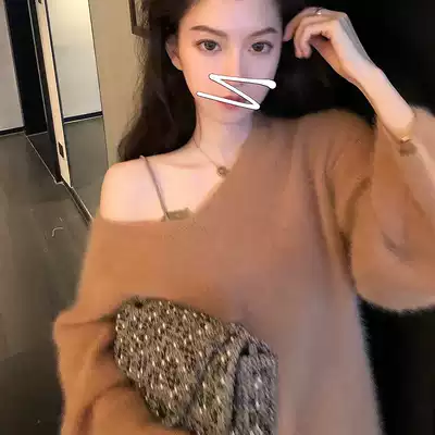 Mink fluff women's autumn and winter new Korean loose temperament lazy wind V-neck pullover retro short sweater