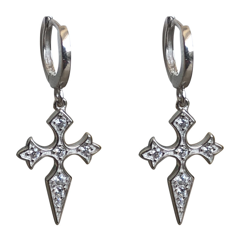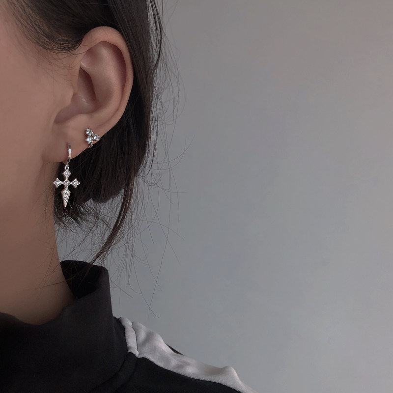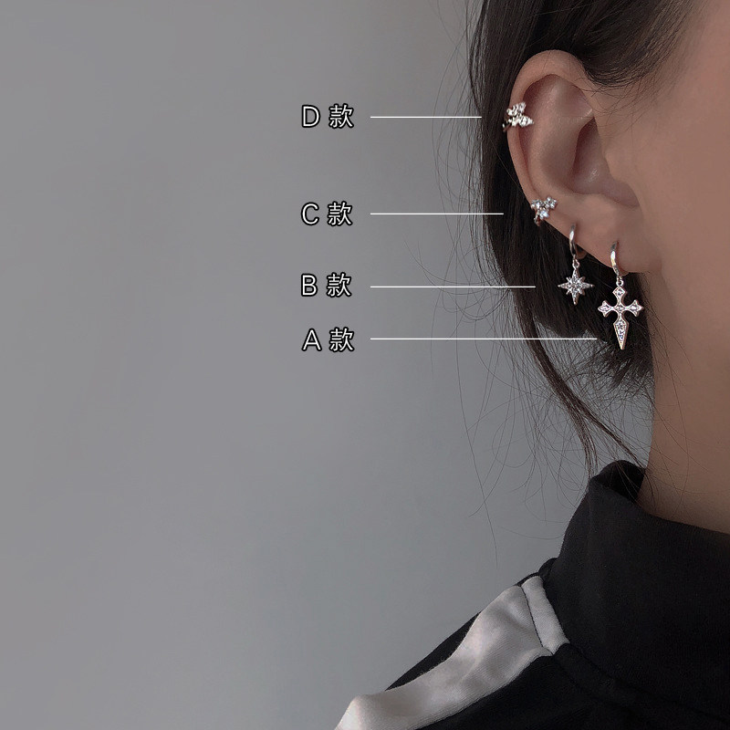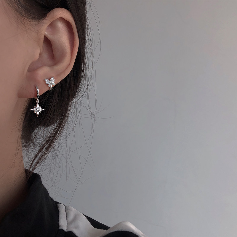 Good-looking small earlobe ear buckle 925 sterling silver personality cross drop earrings Ear bone earrings female butterfly pattern ear needle