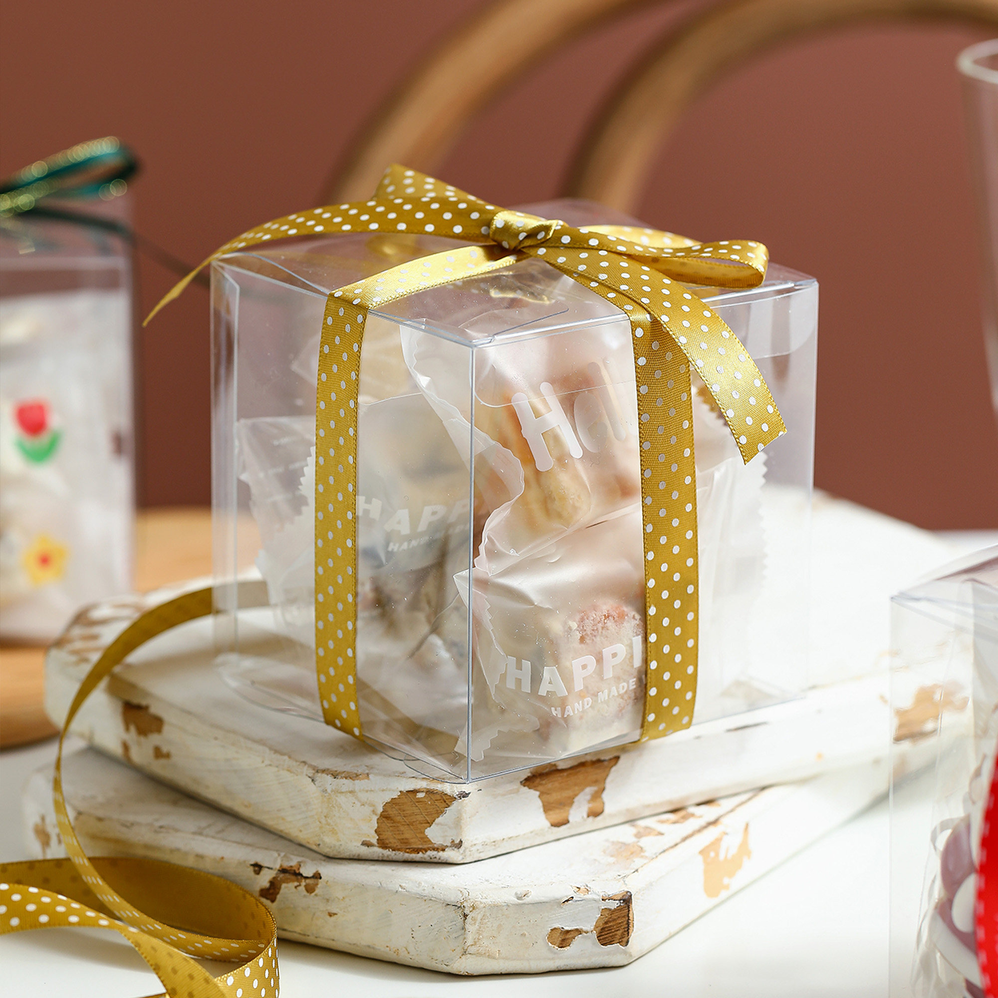 Square Transparent Box 5pcs 6mm Gold Edge Green Ribbon 20m Roll