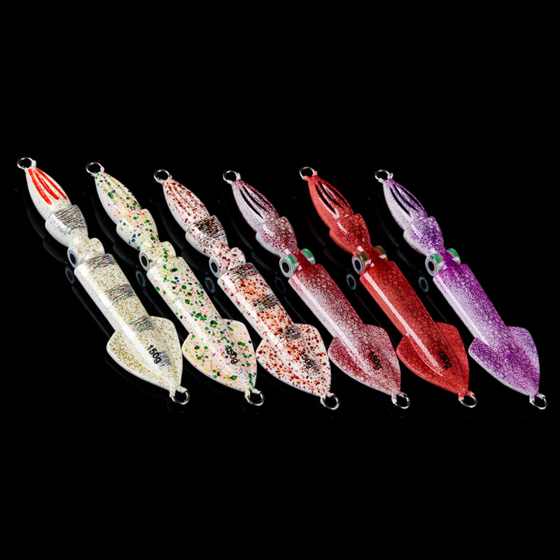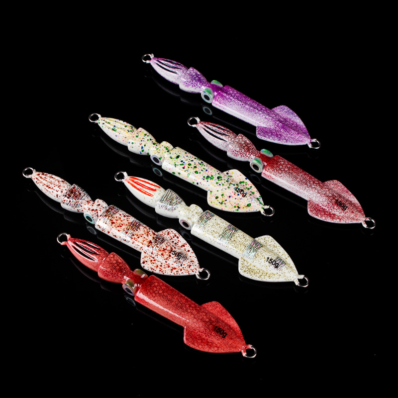 New Japan Tongan 3D printed luminous squid iron plate bait road subbait boat fishing bait 150 gr Fast pumping slow shaking bait