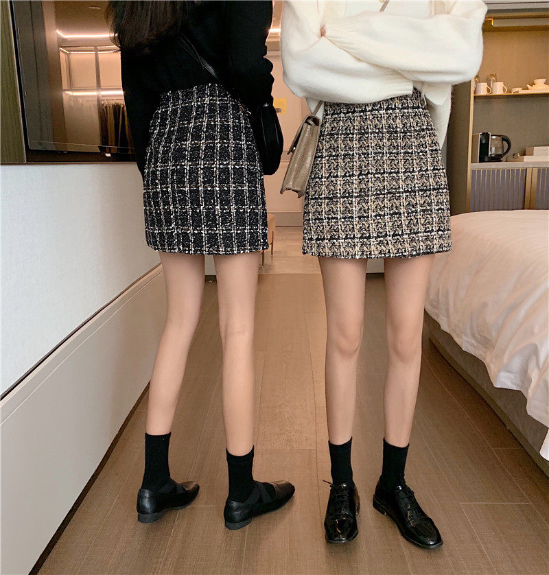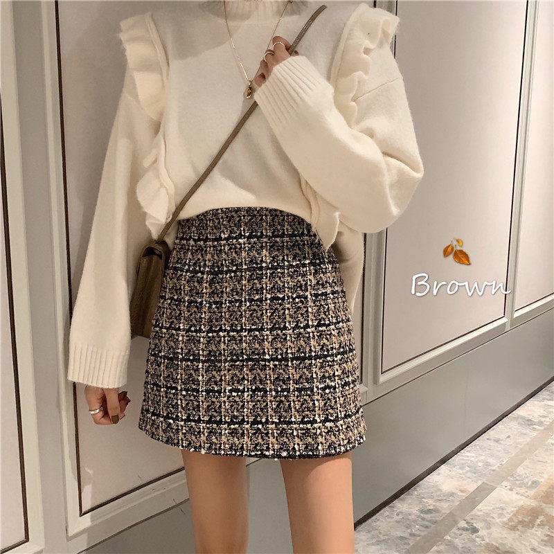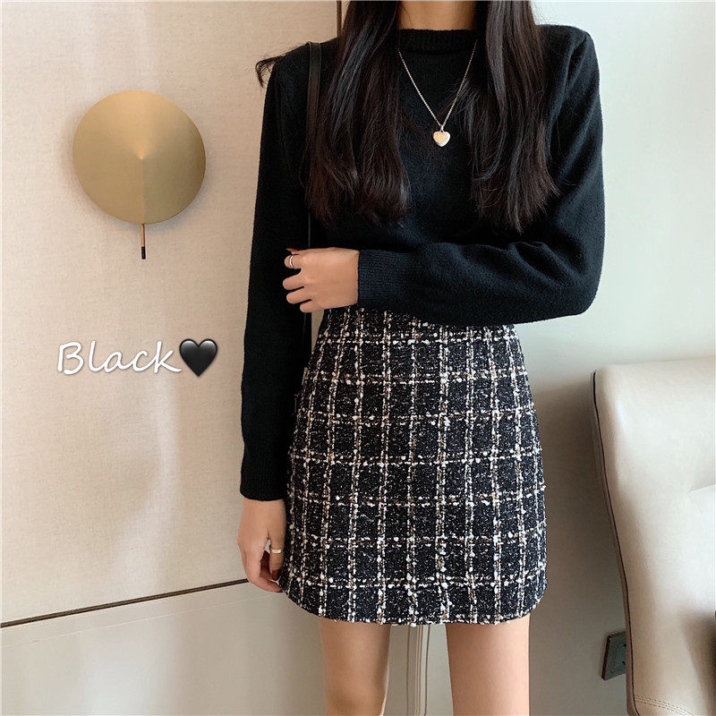 Large Size Small Fragrance Skirt Black Hip Covering Skirt Versatile High Waist A-line Skirt Fat mm Korean Version High Waist Woolen Skirt