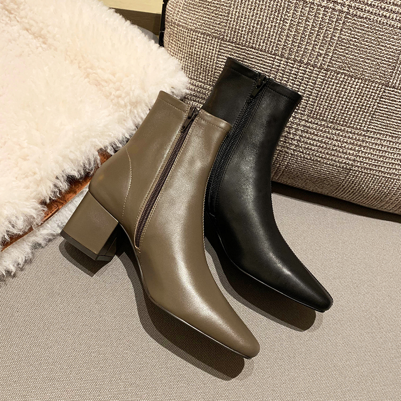 Zhu Xiaomeng Sheep Leather Short Boots Women Spring and Autumn Single Boots White Boots Spring New Joker Rough Heated Slim Boots ins Tide