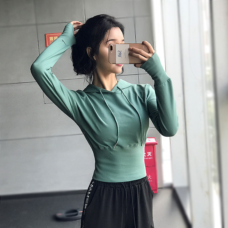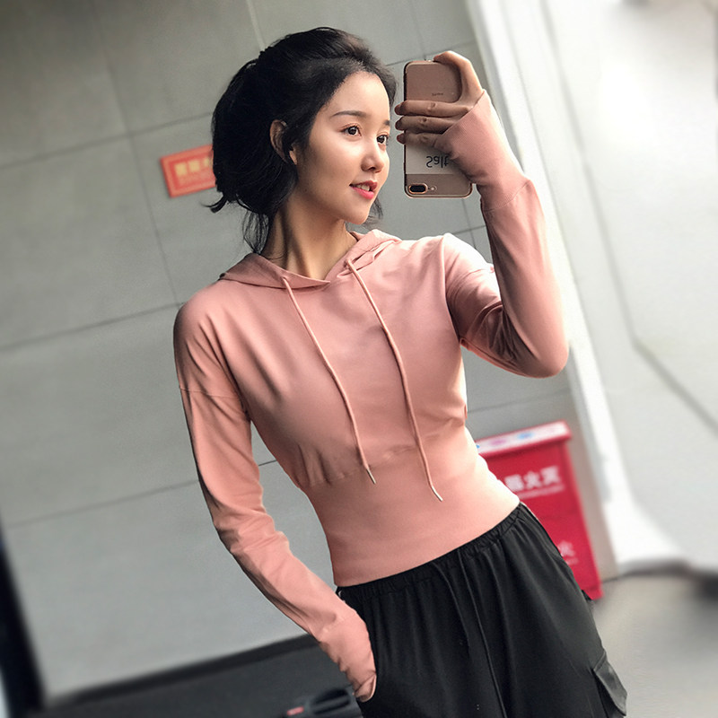 Song station hooded sexy waist guard pants thick cotton T women's long-sleeved loose thin running fitness jacket yoga top autumn