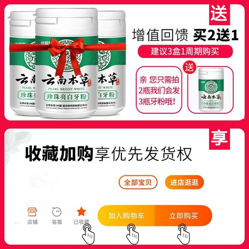 Yunnan herbal pearl whitening tooth powder quick-acting to remove yellow tooth calculus and smoke stains adult in addition to bad breath, whitening and whitening