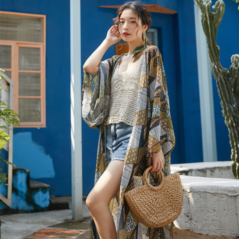 Seaside Holiday Bohemian Sunscreen Sundress Beach Jacket Snowspun Long Version Extras Hood Clown With Shoulder Long Sleeve Cardiovert