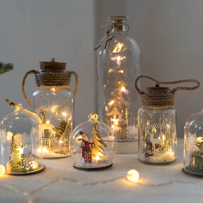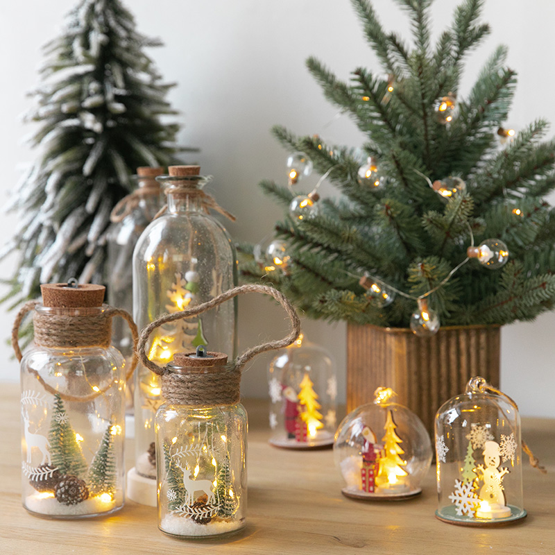 Hromeo Nordic Christmas Glass night Light Christmas Snow scene decoration Desktop Ornaments Christmas decorations