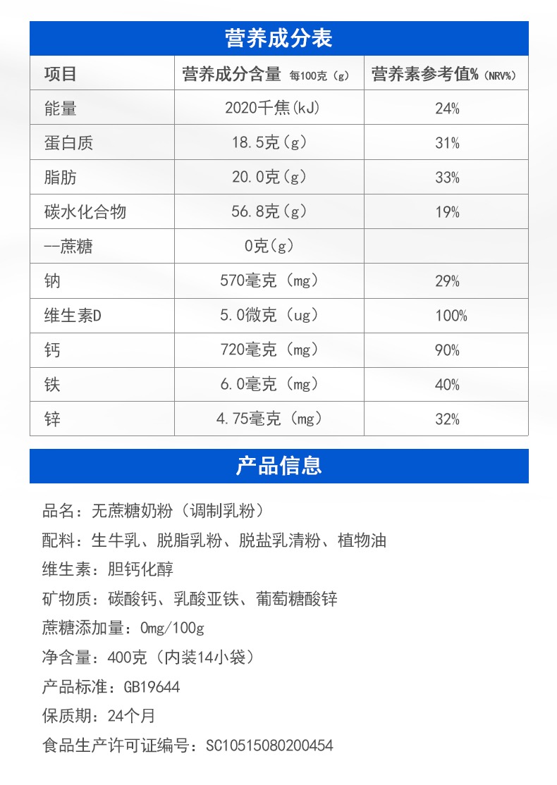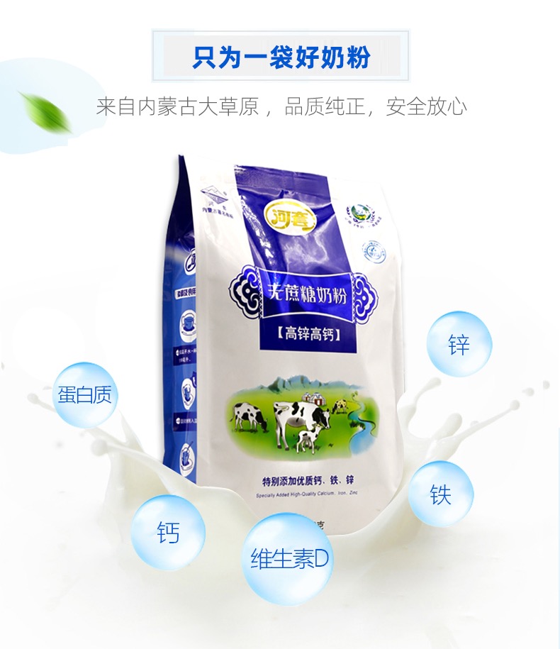 Hetao sucrose-free milk powder high zinc high calcium 400g independent strips of student children adult middle-aged and elderly milk powder