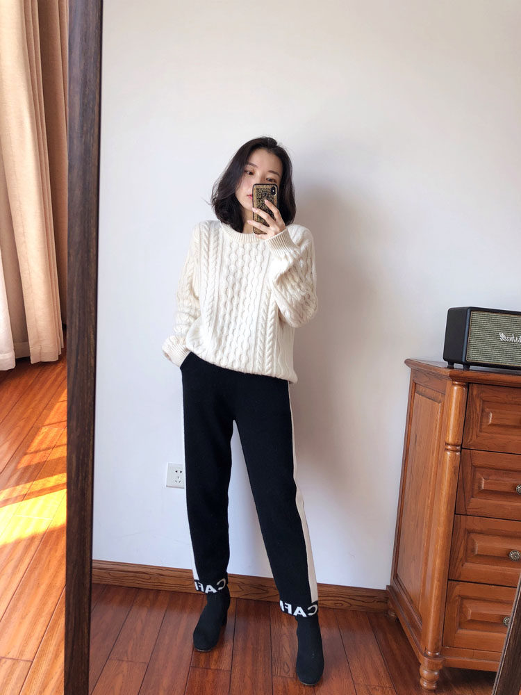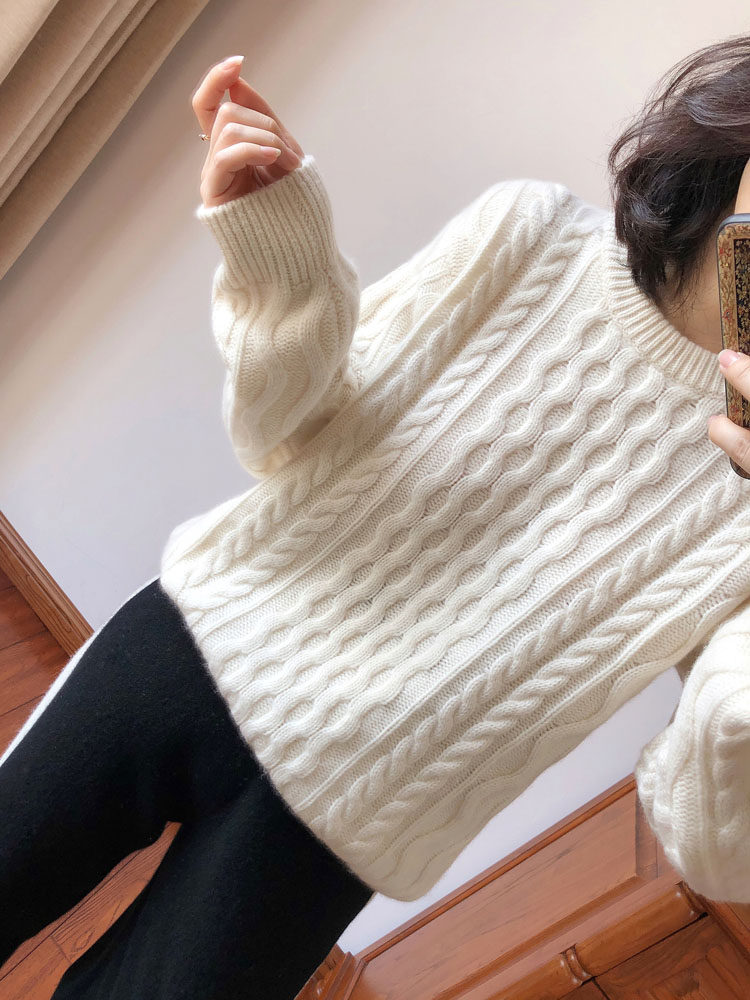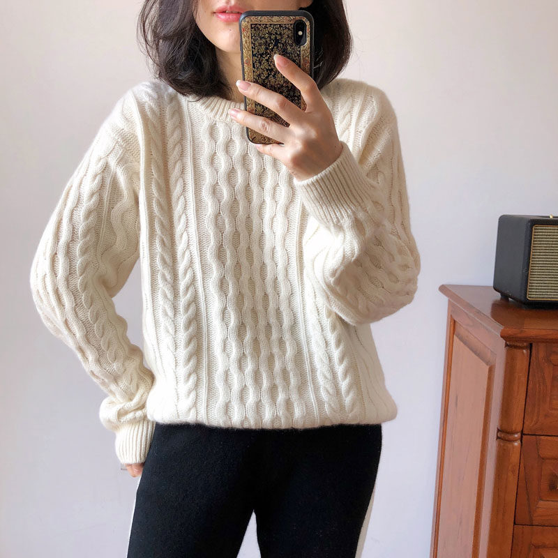 Love velvet custom big cousin joint name same style thickened heavy cable pure cashmere sweater women's thick needle sweater