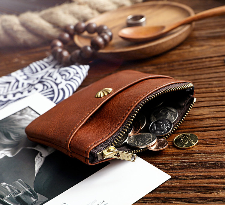 Handmade Men's Short Purse Genuine Leather Laced Driver's License Card With Tannins Niu Leather Zero Wallet Retro Leather Wallet