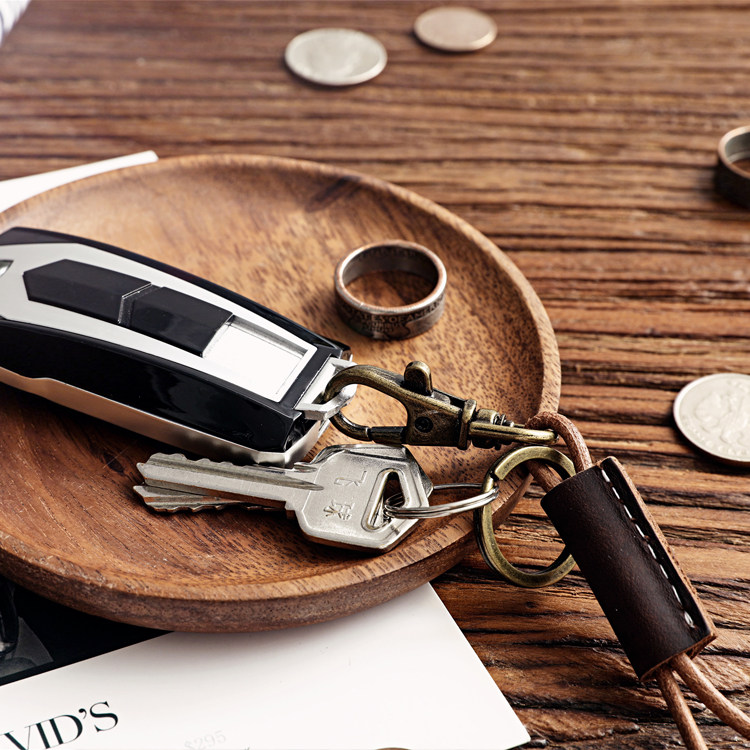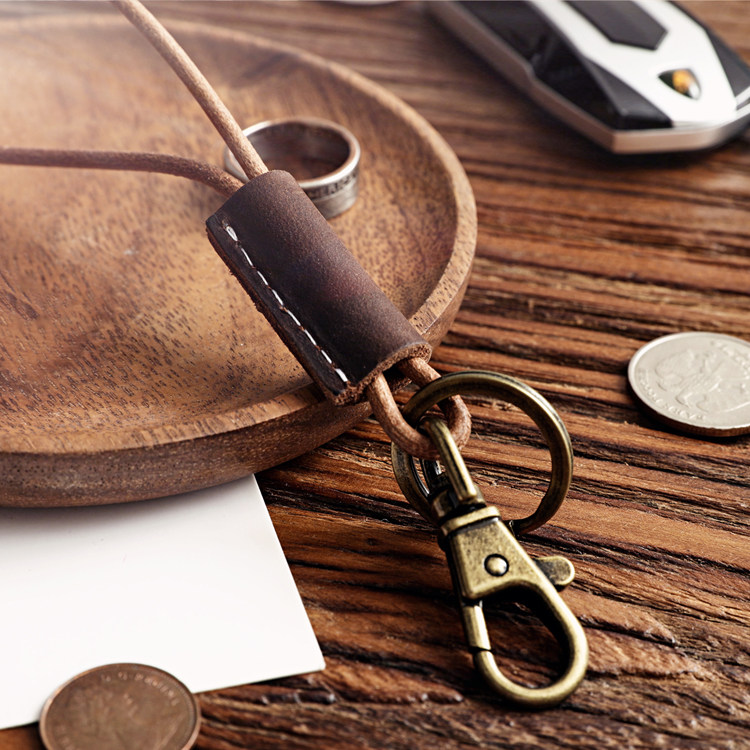 Leather car keykkun male pad female creative retro key hanging rope head layer cow pie motorcycle lock chain