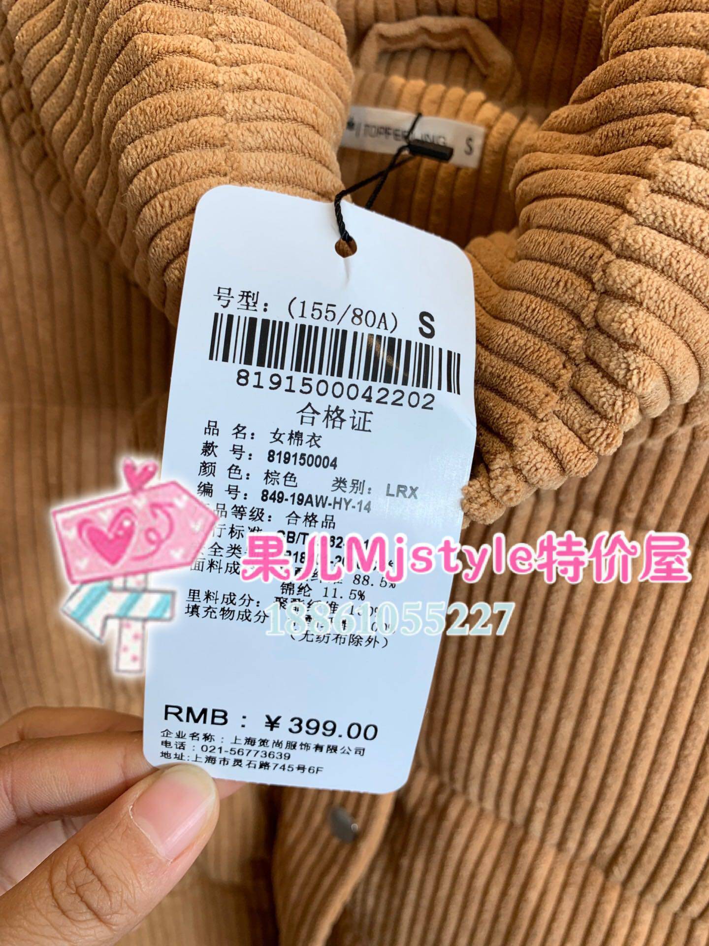 MJ TOPFEELING counter women's cotton coat 819150004 brown blue gray