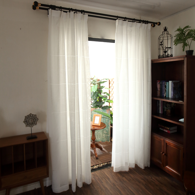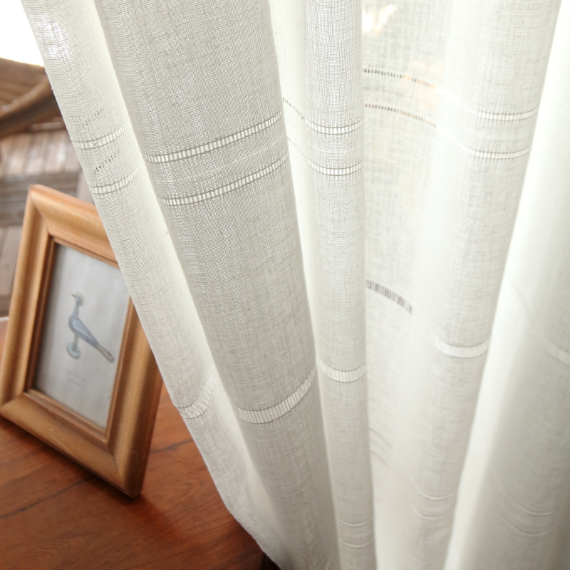 Nordic Hollowed-out Curtain Yarn Curtain Light Transmission Brief Partition Living Room Balcony Pure White Thin Yarn Curtain Hollowed-out Horizontal Veins