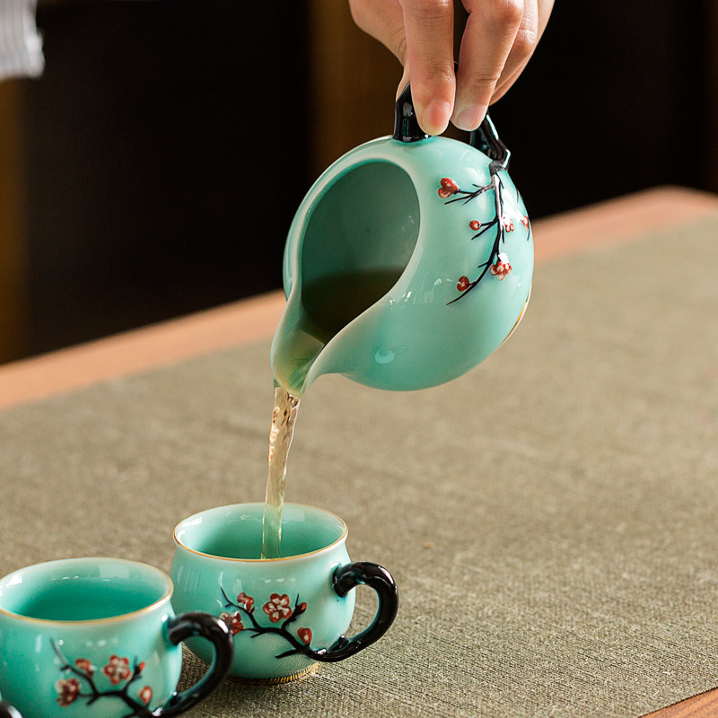 Tangyue kiln celadon tea sea kung fu tea set fair cup with handle household ceramic tea divider large capacity even cup