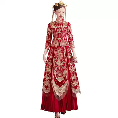 Xiuhe uniform bride 2021 new wedding Dragon Phoenix hanging thin Chinese dress toast wedding dress Xiuhe female autumn