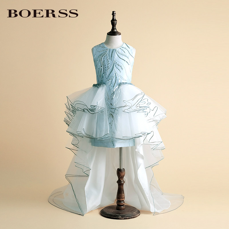 Girl Gown Princess Dresses Princess Dress Fluffy Yarn Super Fairy High-end Atmosphere Tug Boy Little Girl Piano for Children