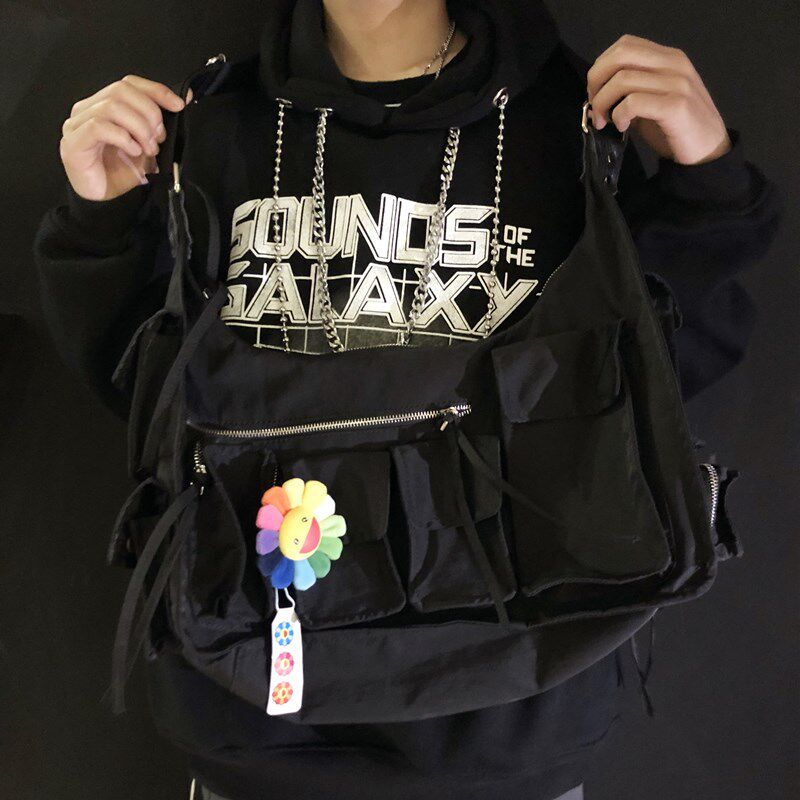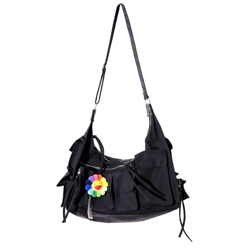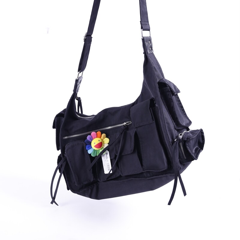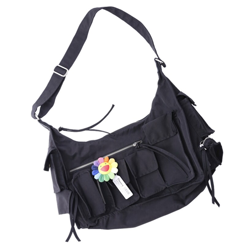 ins mailbag large capacity waterproof black japan tidal card multi-pocket function tooling book back male and female slanted satchel