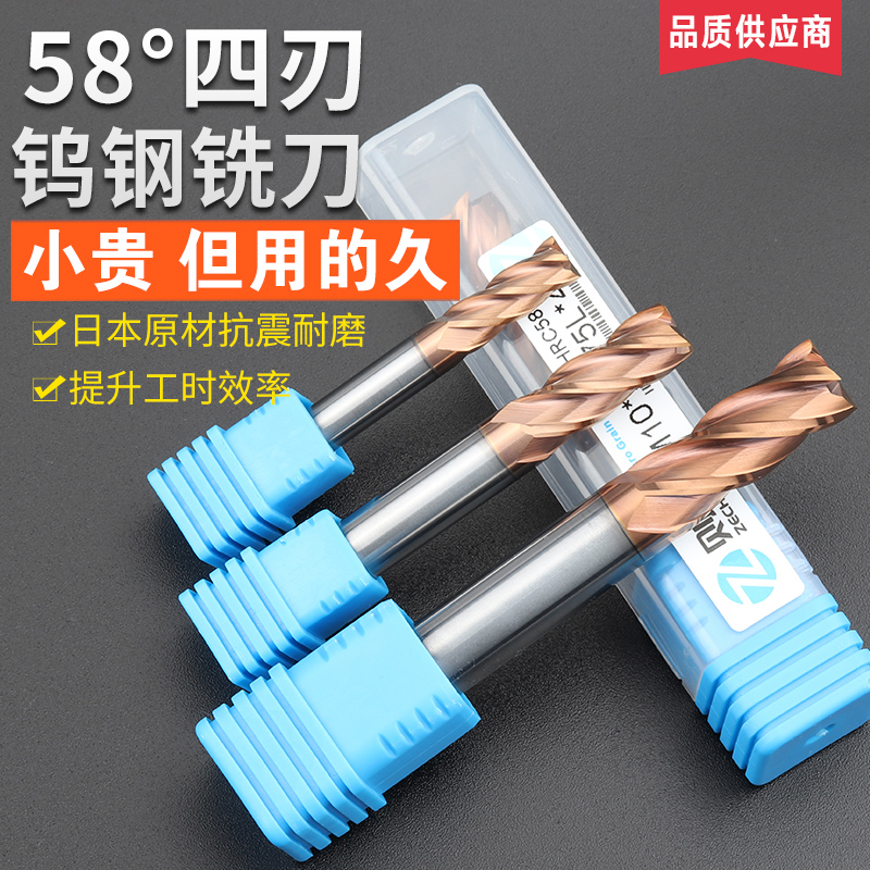Japan imported 58-degree tungsten steel milling cutter carbide 4-edged cnc CNC tool lengthened four-edged flat-bottomed end mill