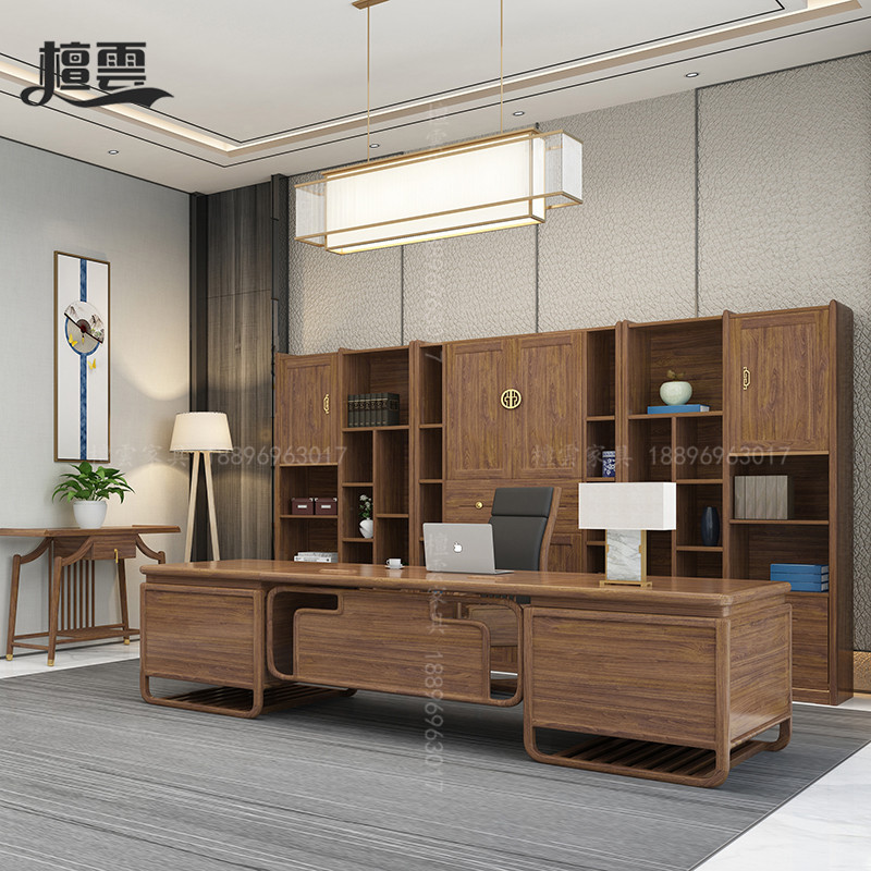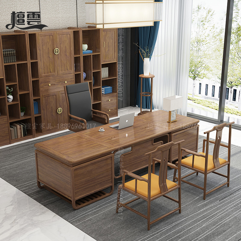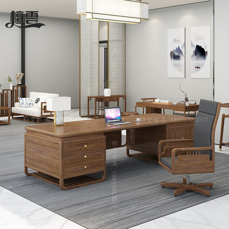 New Chinese style desk solid wood Zen president boss desk single executive desk computer desk office furniture customization