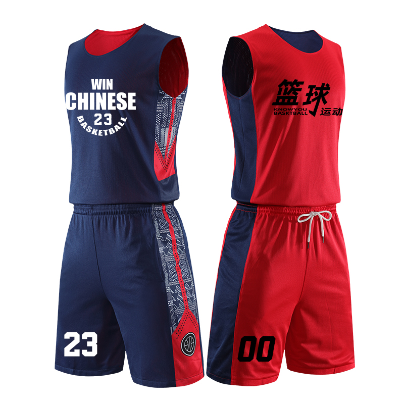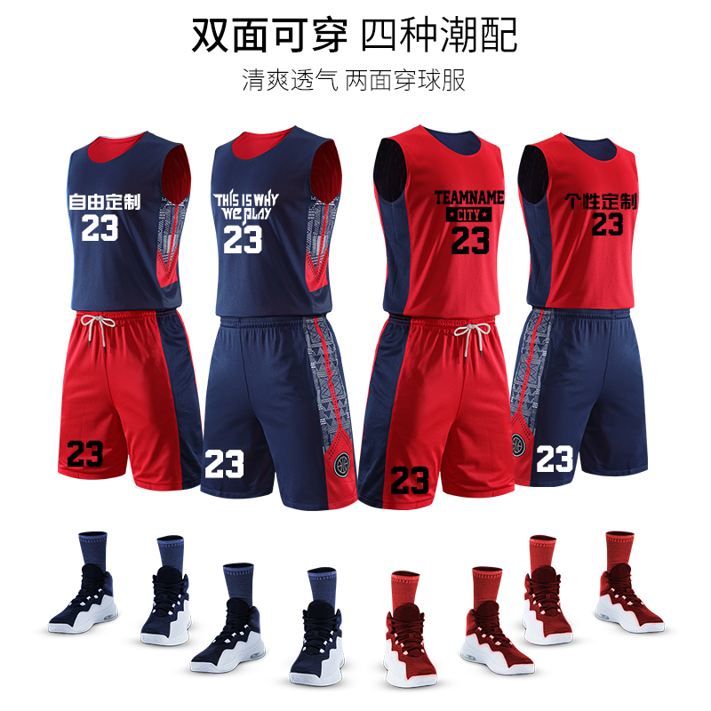Double sided Basketball suit Men's custom Two sides wearing jersey student Breathable Vest training to wear the word sportswear wave
