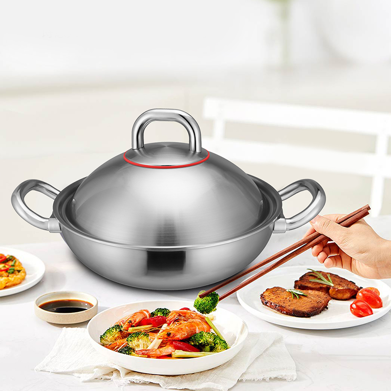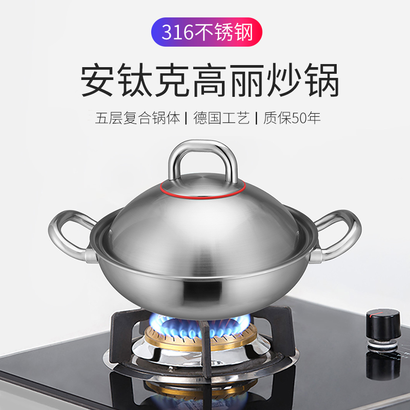 Antiac five-layer composite 316 stainless steel wok 28cm non-coated non-stick pan less oil fume fire general purpose