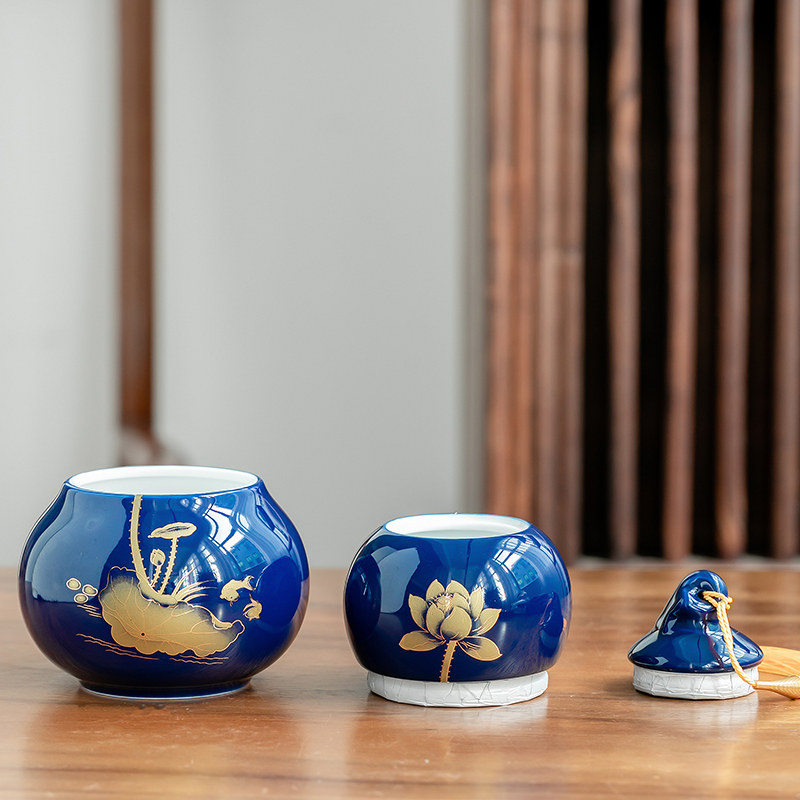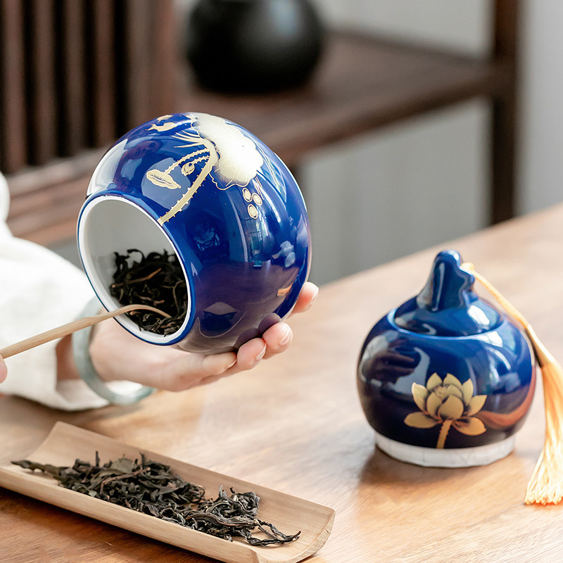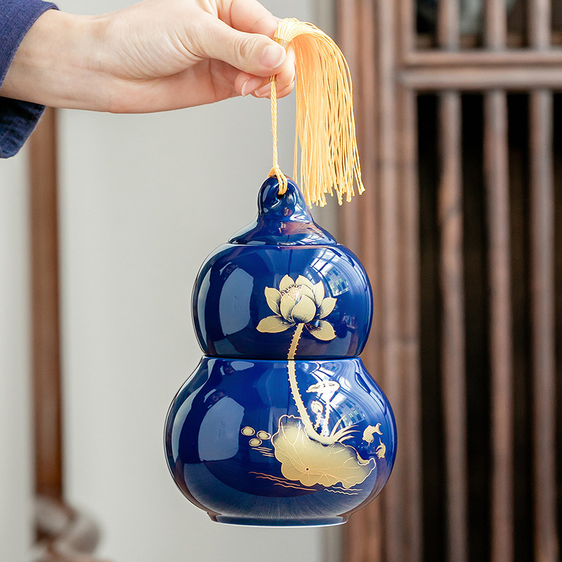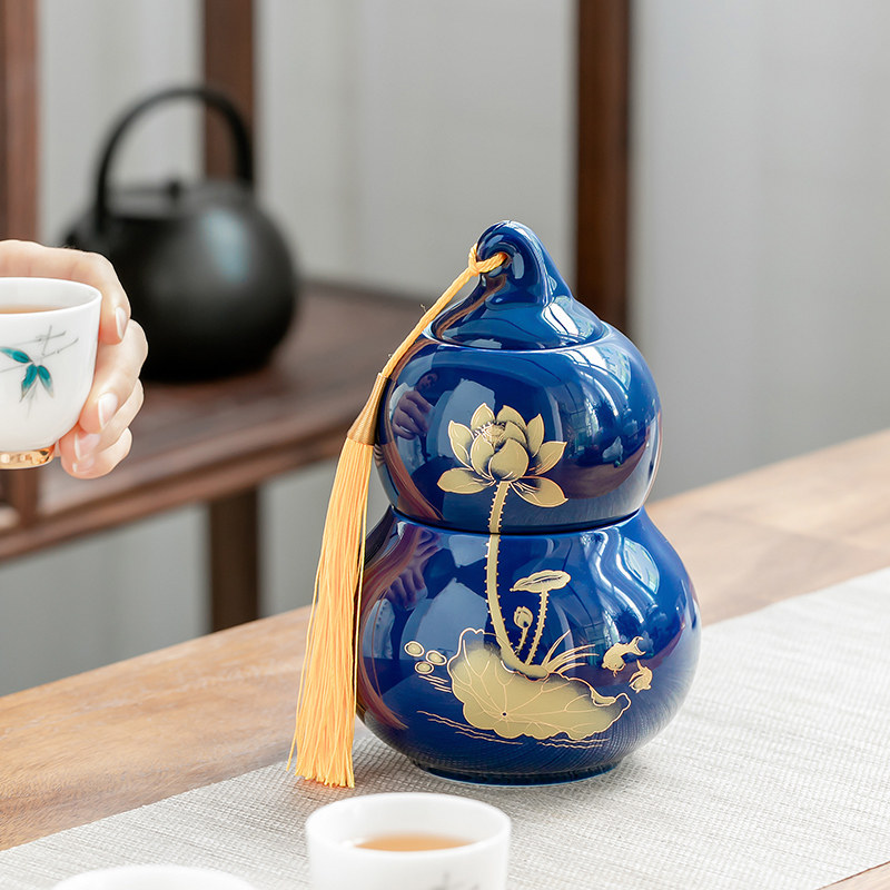 Gourd tea pot ceramic sealed pot storage tank storage box storage tank storage tea pot household medium ornaments moisture-proof