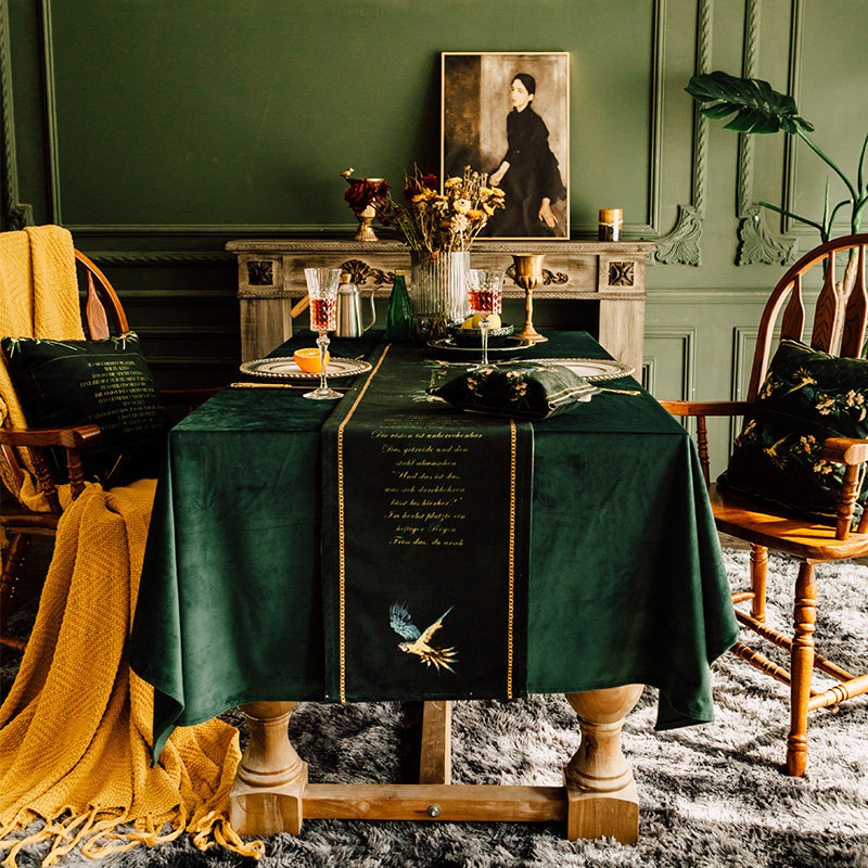 Ink green American retro fabric Waterproof Table Flag Home Living Room Table Flag Cloth Table Towels STRIP TV CABINET BUTHICK