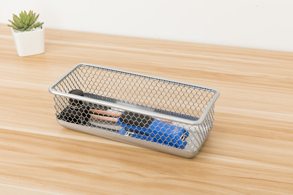 Wrought iron round bottom letter slot desktop cosmetics storage box Metal grid home office stationery storage and finishing