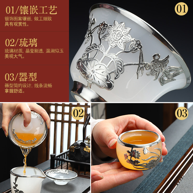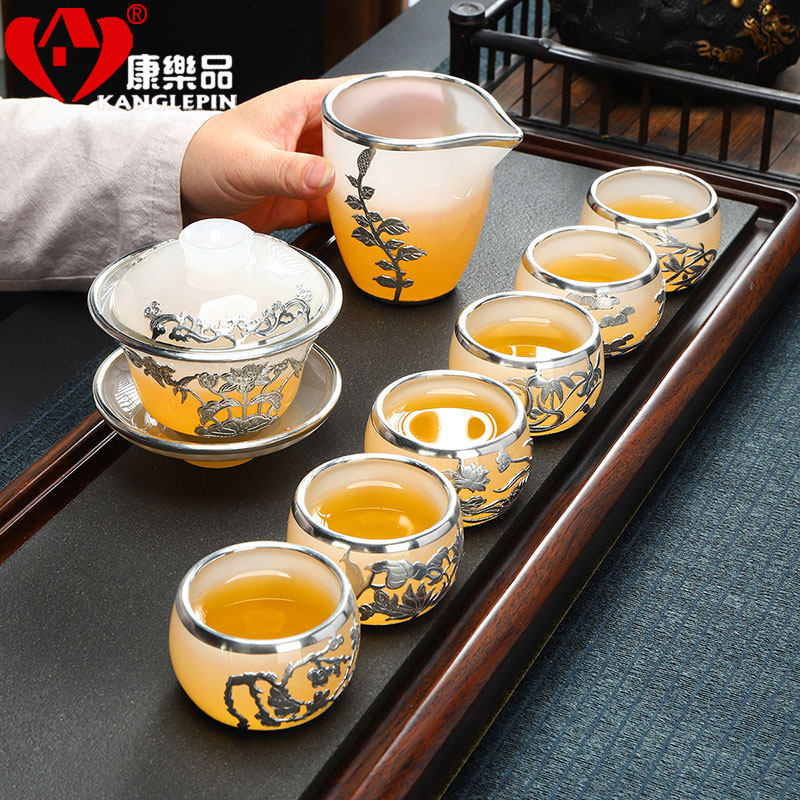 KLP1018A gold jade glass cupboard tea set (8 head) KLP1018A gold jade-teapot set (10 head) gold-blood-glass cover bowl set group
