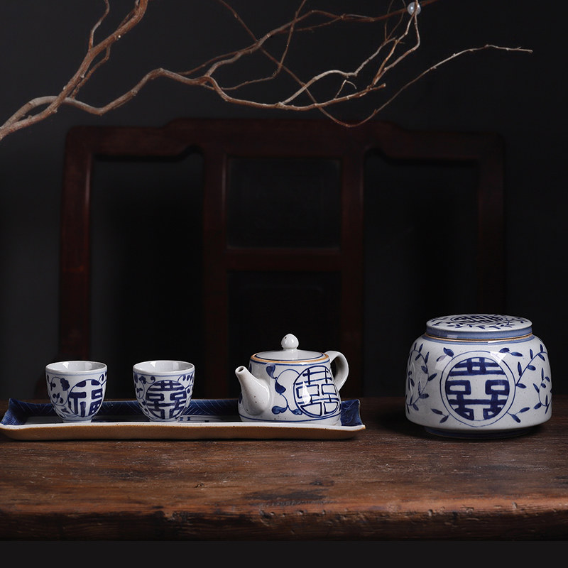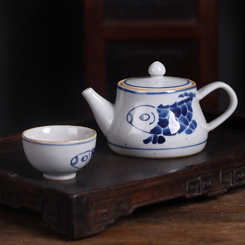 Jingdezhen Retro Green Flower Porcelain Coarse Pottery Hand-painted Creative Kung Fu Teapot Tea Tea Set