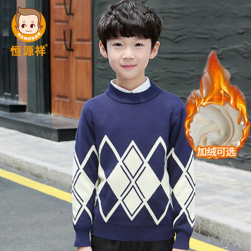 Hengyuan Xiang Boy Sweater Autumn Winter CUHK Tong Pure Cotton Thickened Knit Cardiovert Boy Children Children's Clothing Plus Suede Cardiovert