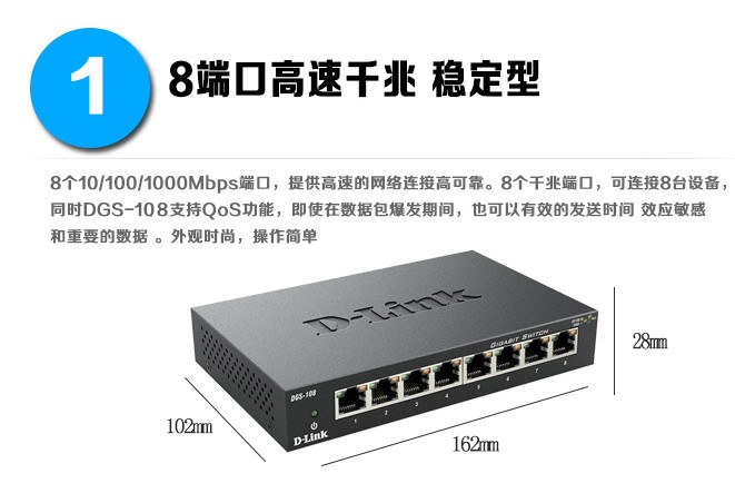 DLink Friend DGS-108 enterprise-wide 8-mouth one thousand trillion iron shell desktop type switch Internet monitor extension cord