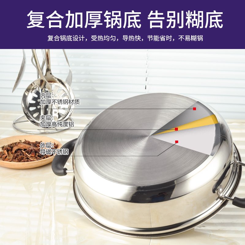 28CM single bottom for 2-4 people 30CM single bottom for 3-5 people 32CM single bottom for 6-8 people 34CM single bottom for 8-10 people (double bottom