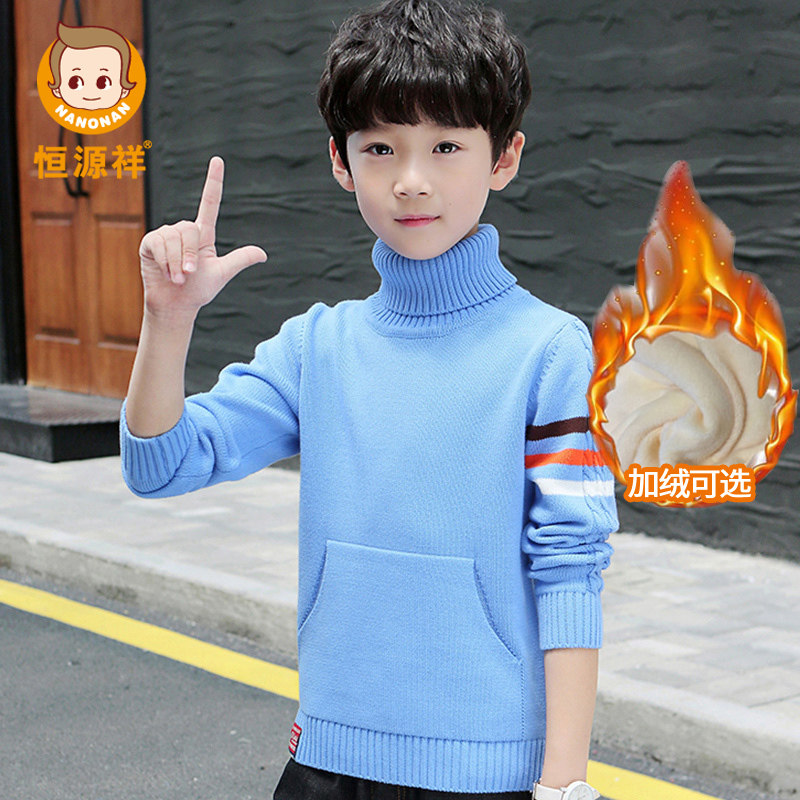 Hengyuan Xiangxiang boy high-neck sweater Spring and Autumn of large children's cotton plus knitting tops thickened