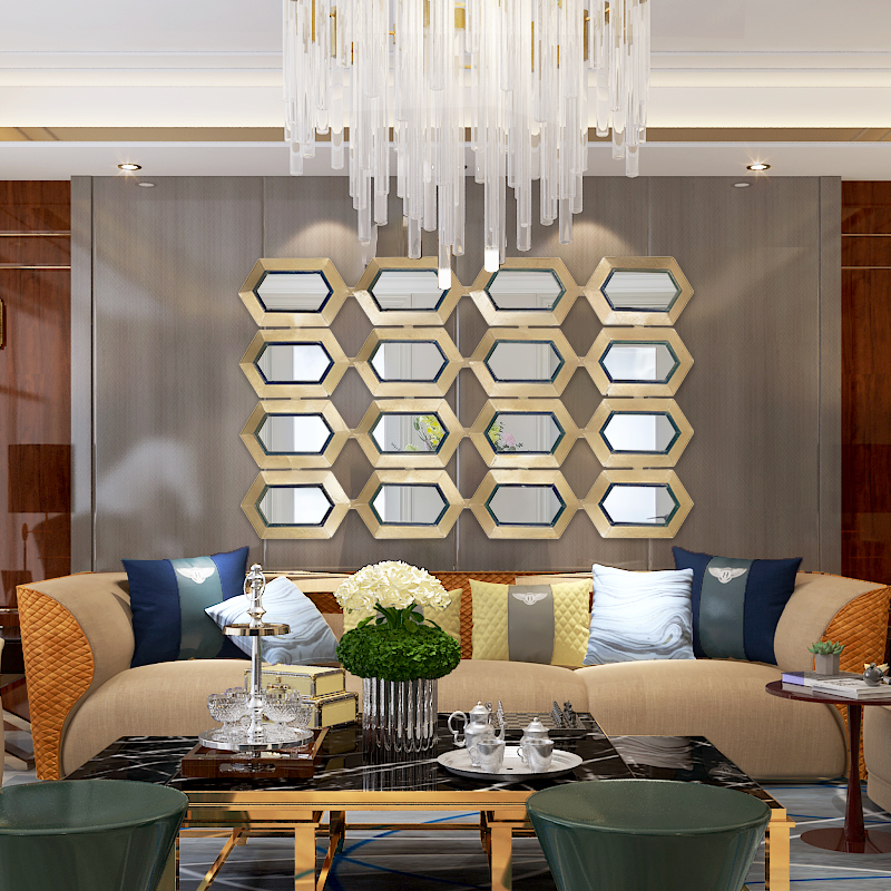 Eurostyle Light Lavish Mirror Decorated Wall Living Room Sofa Background Wall Mirror Dining Border Wall Wall-mounted wall Creative Composition Mirror
