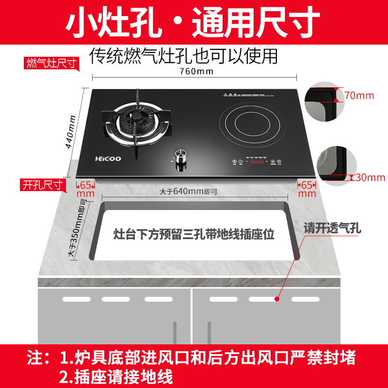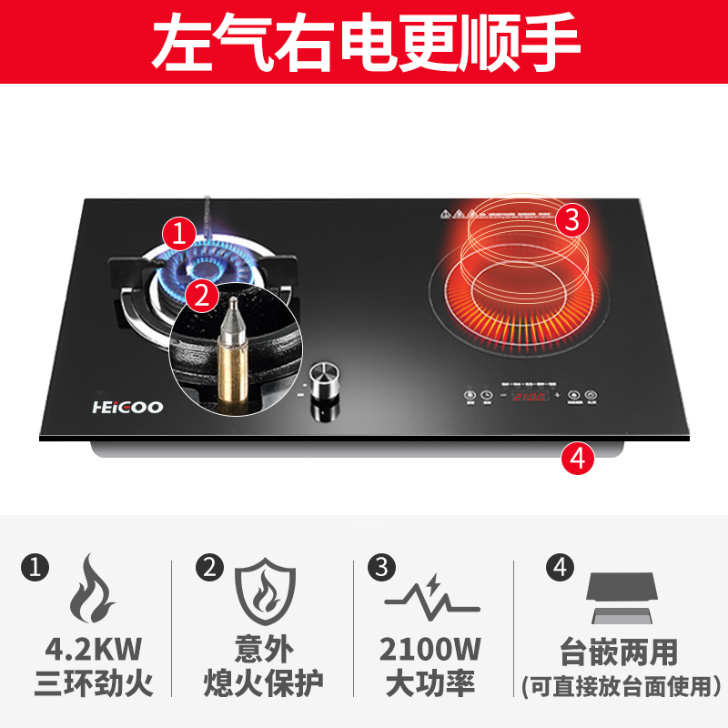 HEIGOO gas and electric stove Induction cooker Gas stove Integrated embedded desktop gas and electric dual-purpose dual-eye household gas stove