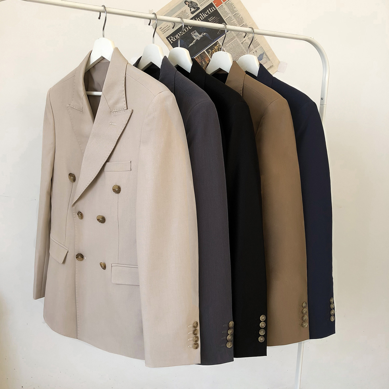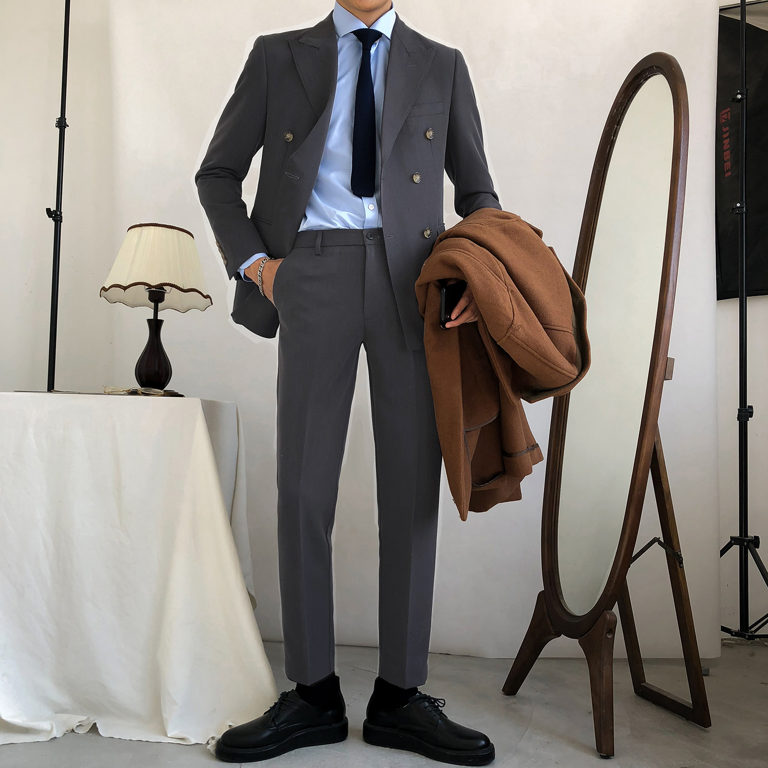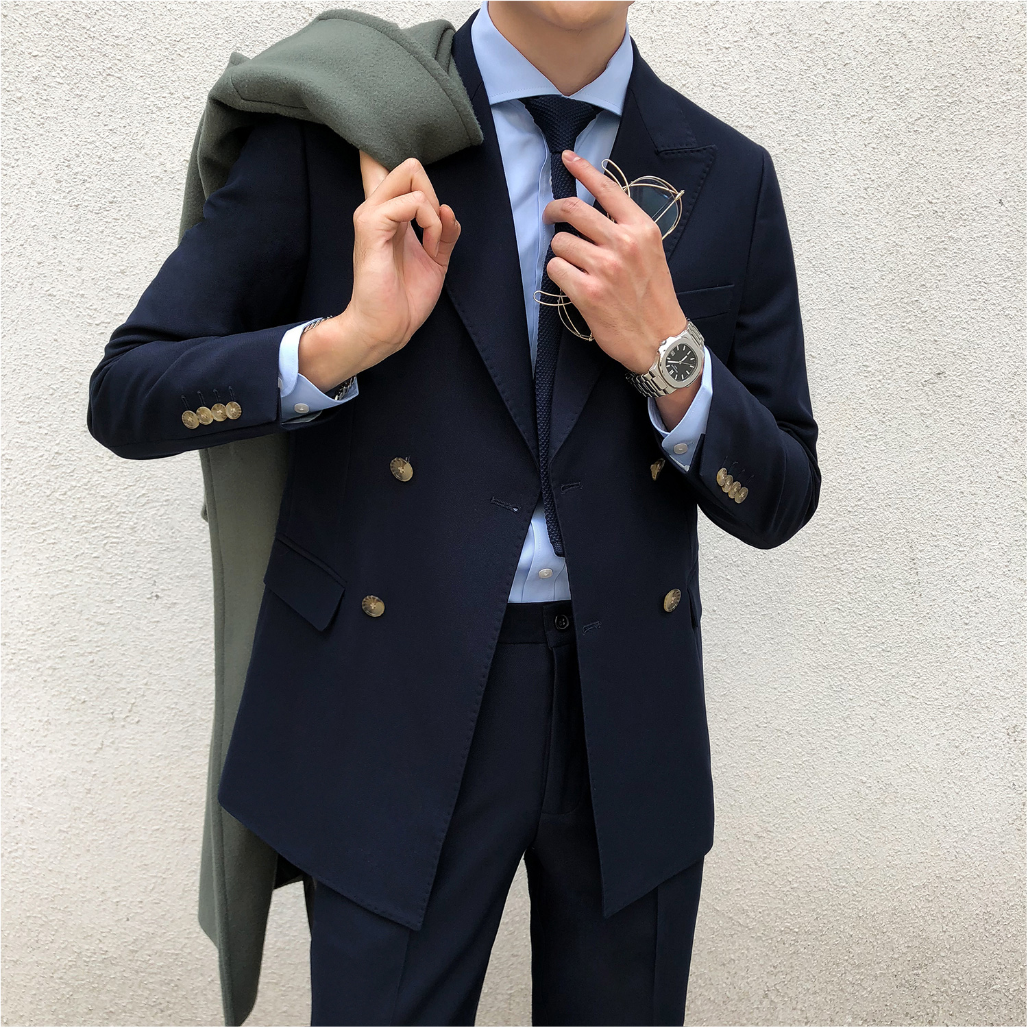 Men's suit suit Wedding dress Autumn new British style Korean version slim double-breasted suit two-piece tide
