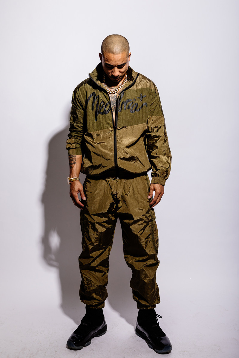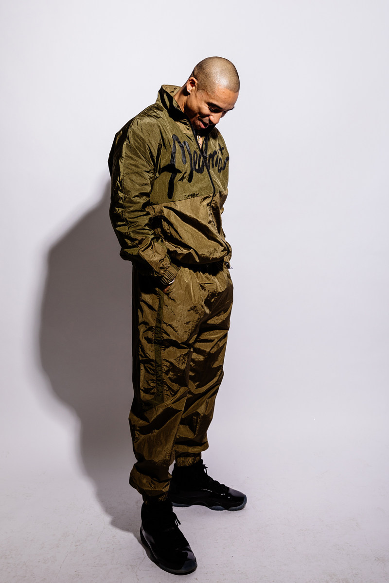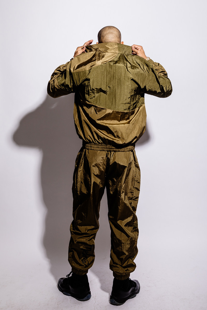 green jacket and green trousers