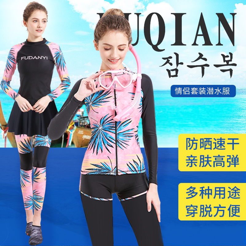 Diving Suit Women Suit Long Pants Long Sleeve Swimsuit Laced South Korea Male And Female Jellyfish Two-piece Sunscreen Couple Surf