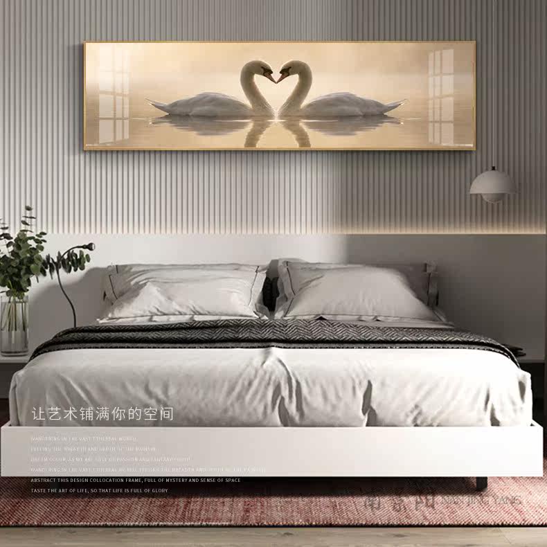 Swan bedroom bedside decoration painting Nordic light luxury atmosphere crystal porcelain painting modern minimalist living room sofa background hanging painting