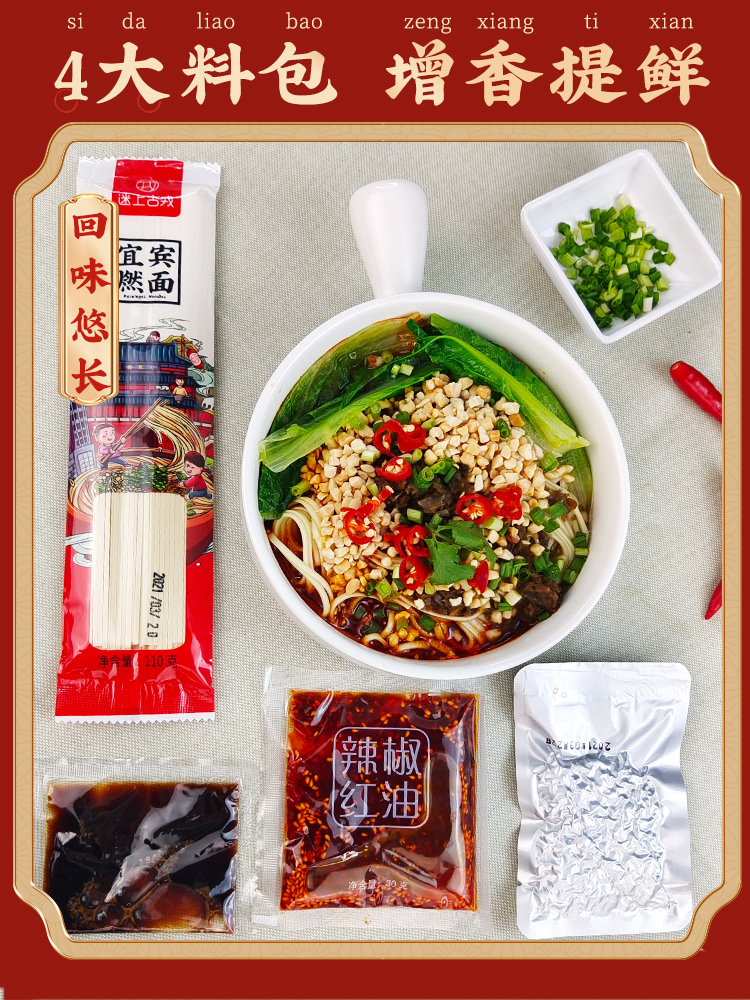 Fascinated by Gurong Yibin Burning Noodles Seasoning Pack Sichuan Specialty Spicy Red Oil Dry Mixed Noodles Supper Instant Noodles Breakfast