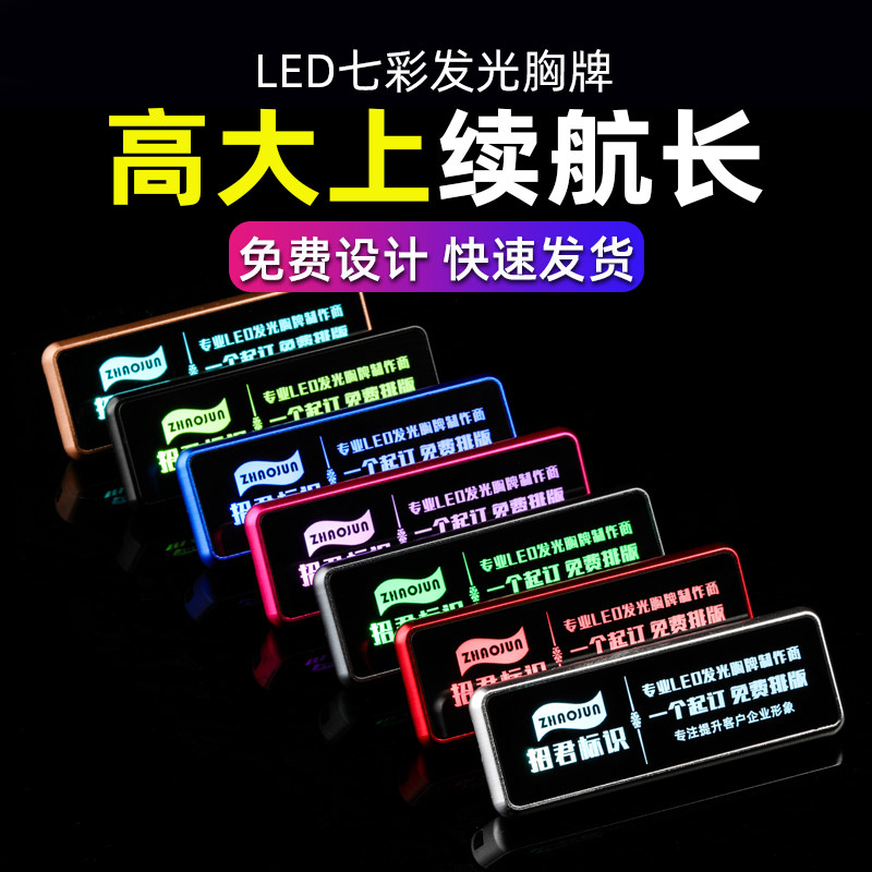 High-grade luminous badge led display customized metal pin bar KTV generation electronic worker number plate production